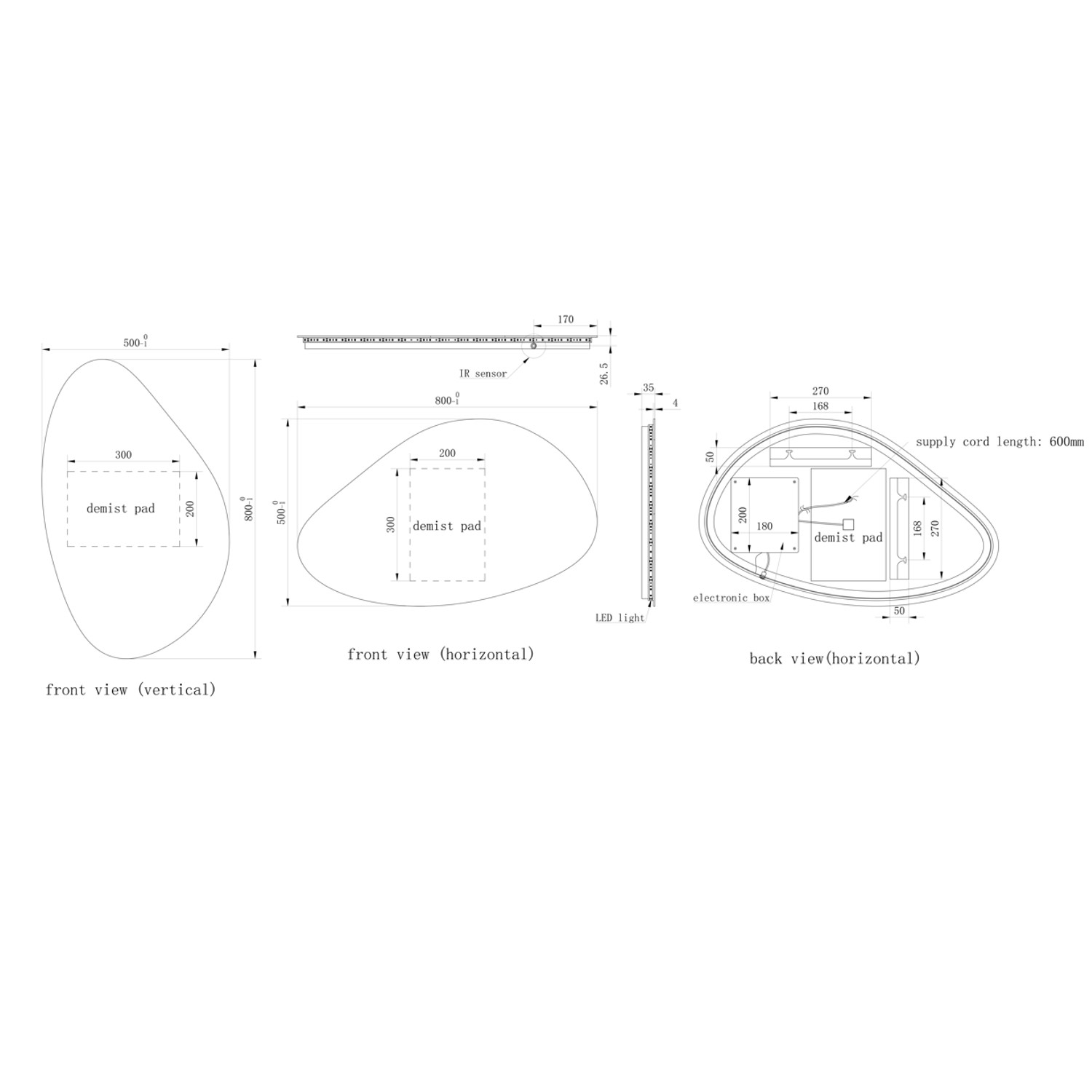 - Dimensions: W800 x D35 x H500 mm