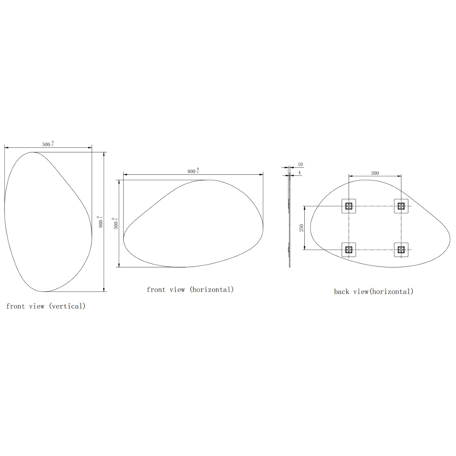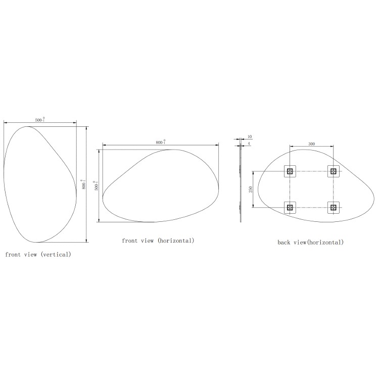 - Mirror Portrait Dimensions: H800mm x W500mm x D10mm