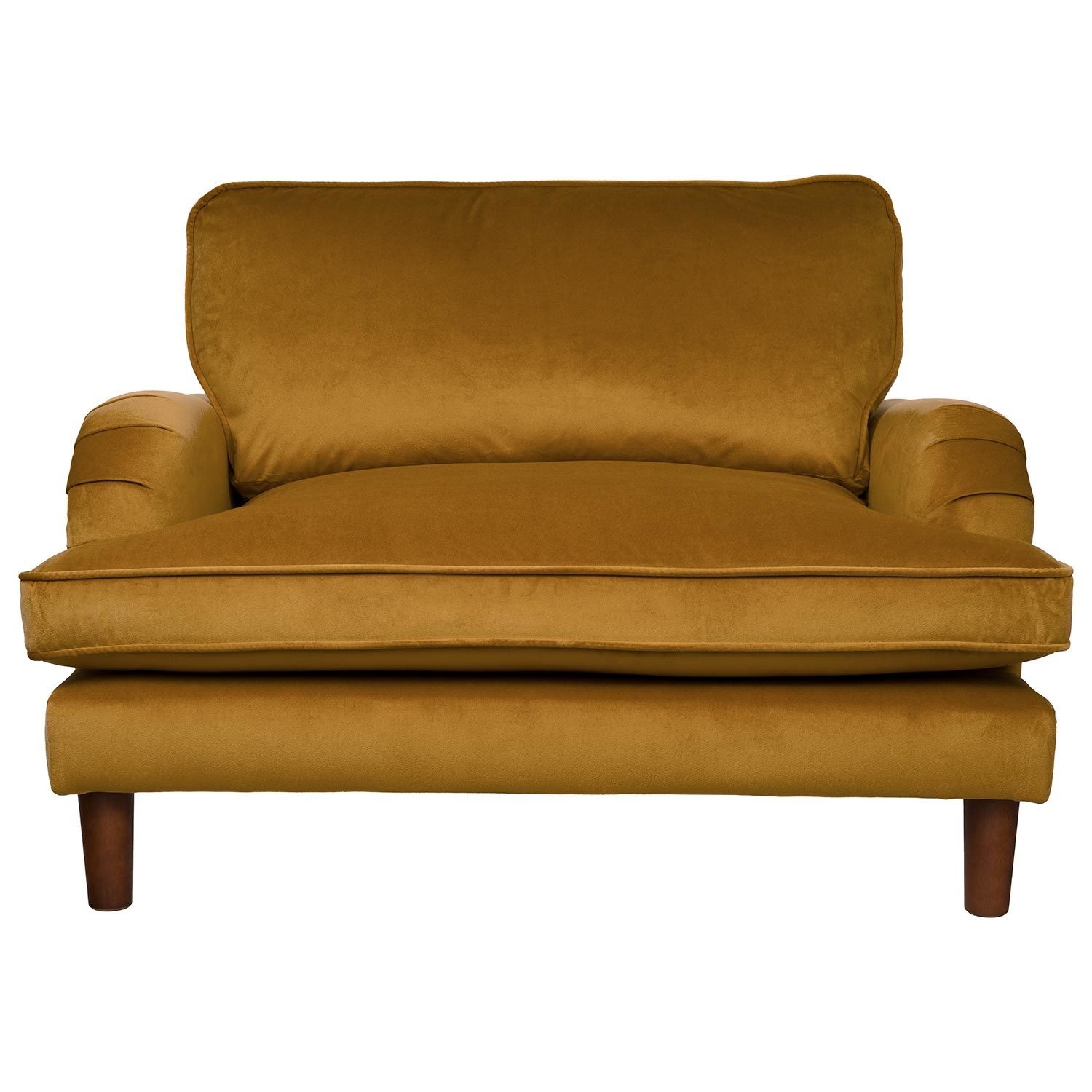 - Finish: Velvet upholstery and wooden legs