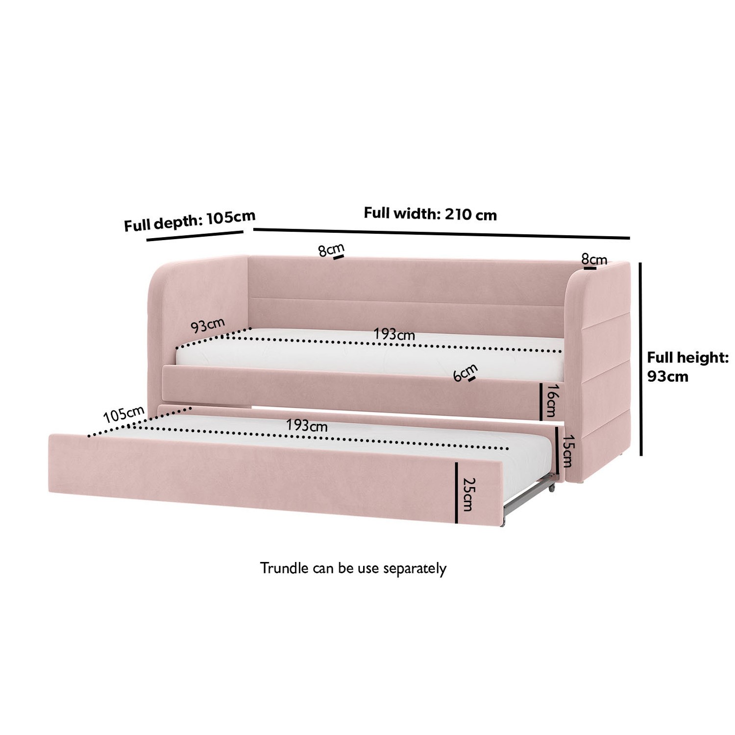 - Trundle dimensions: W193 x D105 x H25 cm