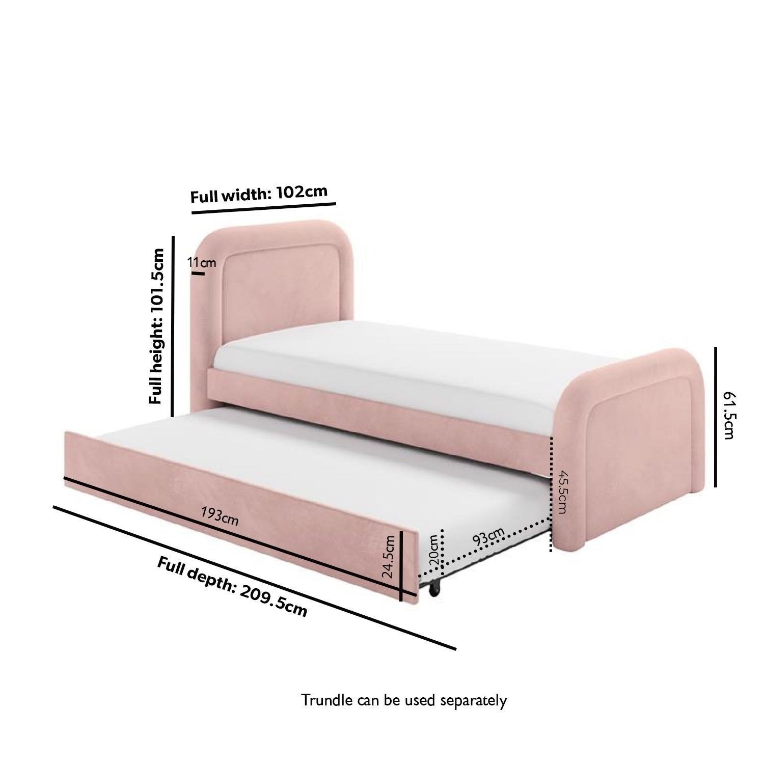 - Trundle dimensions: W93 x D193 x H24.5 cm