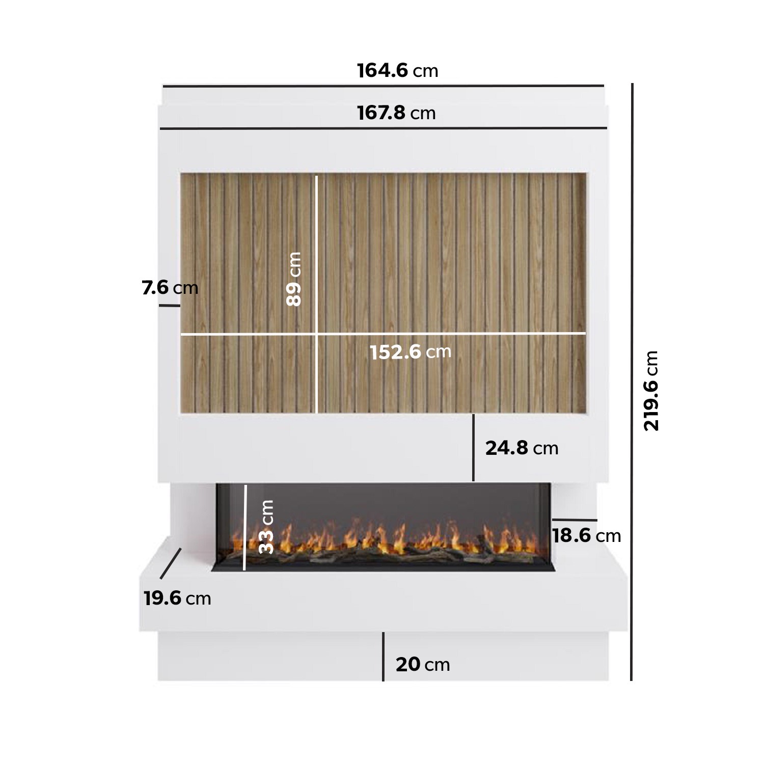 50-Inch Fire Compatibility: The design is specifically built to fit a 50-inch electric fireplace in the centre, with a dedicated space that accommodates the unit