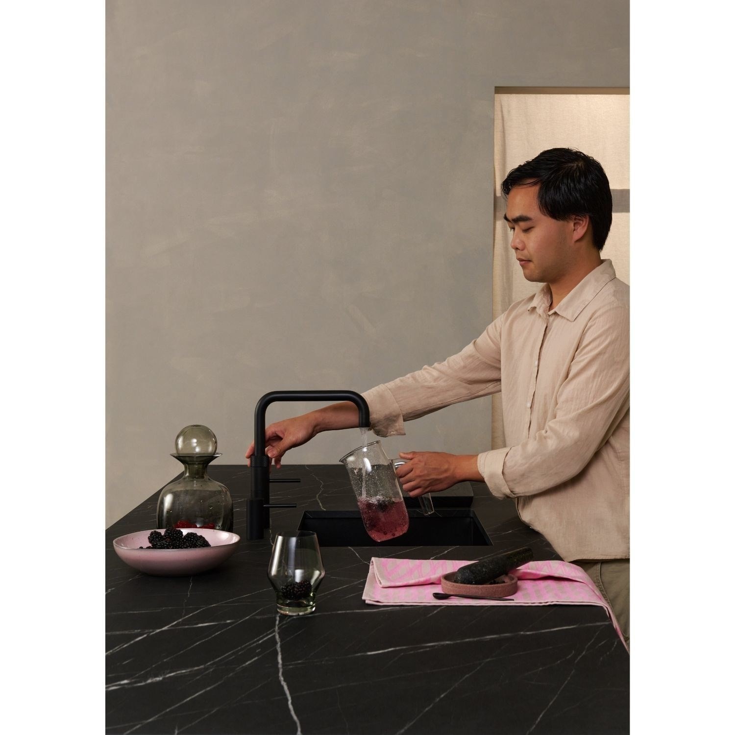 The Quooker Fusion Square tap in black combines high functionality with striking design. Offering cold, hot, and instant 100°C boiling water in one streamlined tap, it removes the need for a kettle and simplifies everyday kitchen tasks. Its bold square spout and solid stainless-steel construction provide durability and contemporary style, while the black PVD finish adds a statement-making, low-maintenance surface. Equipped with a precision ceramic valve, this tap delivers smooth, consistent control and lasting performance.