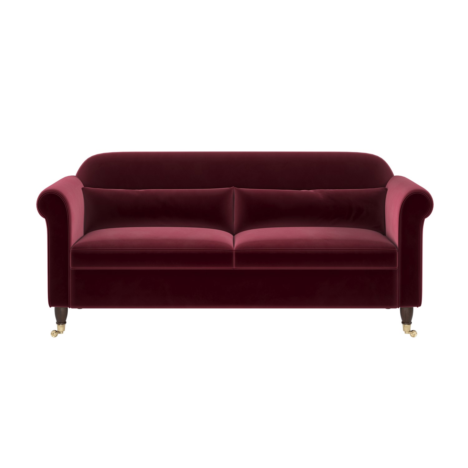 The Ramona traditional 3-seater sofa is burgundy velvet brings a timeless elegance to any living room. Upholstered in bold yet elegant burgundy velvet, Ramona offers both warmth and sophistication, making it an inviting centrepiece for your space. With classic scroll arms and turned wooden legs with castors, it blends traditional charm with modern touches. The foam and fibre-filled seats ensure long-lasting comfort and support, while the removable cushion covers make cleaning easy. Perfect for families, the Ramona sofa adds character and comfort, making it an ideal choice for any home.