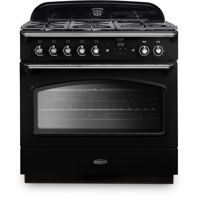 Rangemaster Classic 90cm Dual Fuel Range Cooker- Black & Chrome