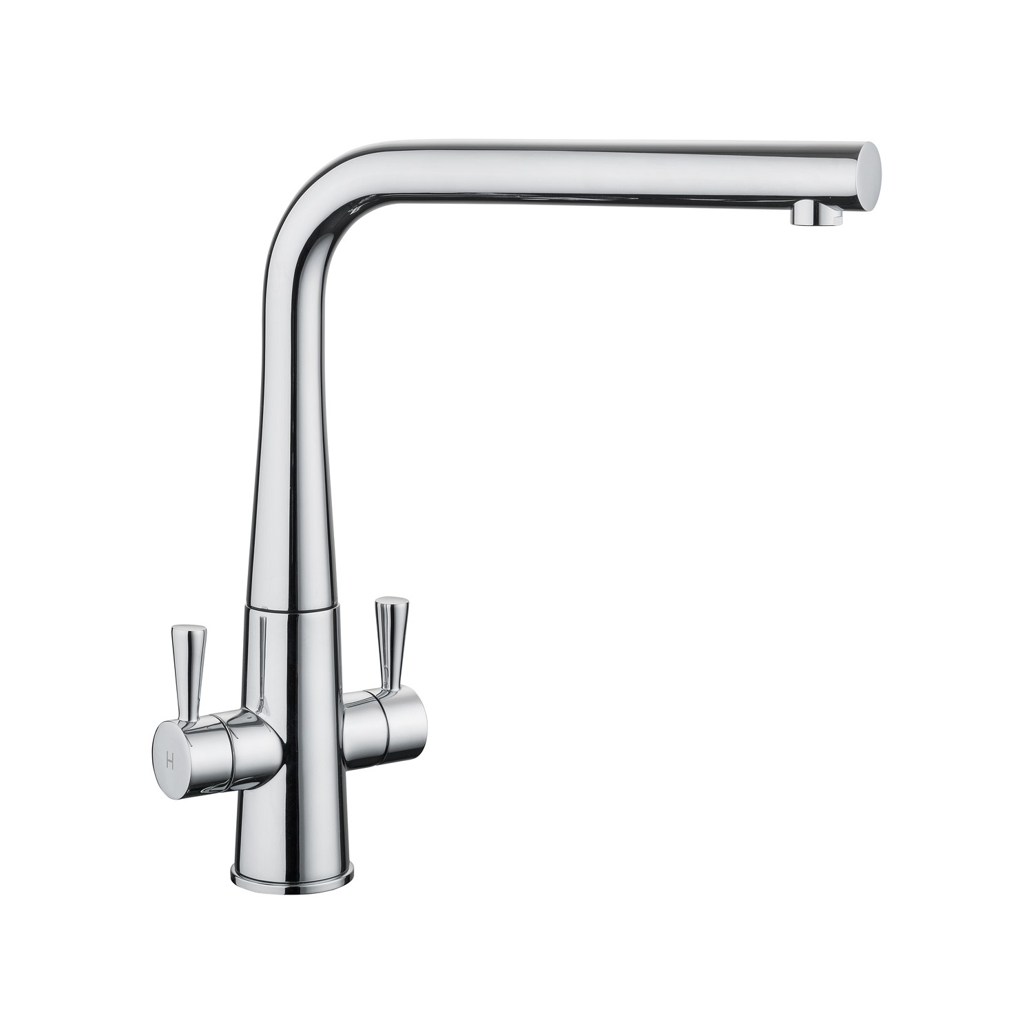 The chrome double lever mixer tap combines contemporary style with reliable performance for your kitchen. Crafted from high-quality brass, it delivers long-lasting durability and resistance to corrosion, maintaining its polished finish over time.