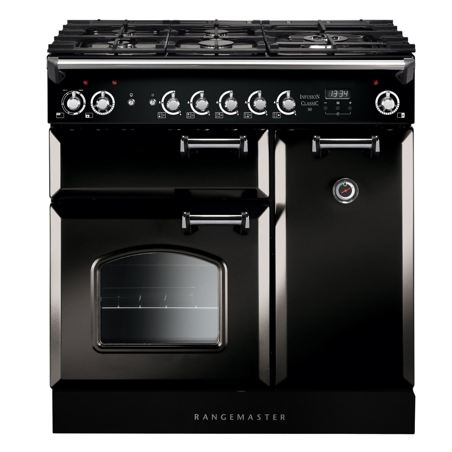 A truly traditional range cooker with a modern twist, the new Infusion Classic design features our renowned baker-style viewing windows for a clear view of what’s cooking inside. It also comes complete with robust steel handles, telescopic shelving for safe, easy access to your dishes as well as an ergonomic glide-out grill and fan ovens. With two sizes and dual fuel or induction to choose from, this model also comes with a branded Rangemaster plinth to finish the look.