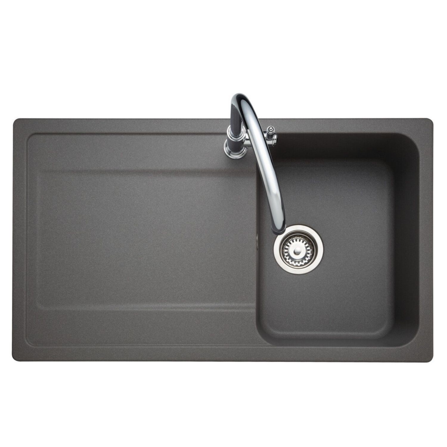 The spacious single bowl offers plenty of room for washing cookware, rinsing vegetables and handling everyday cleaning tasks with ease. Finished in a contemporary concrete colour, it adds a sleek, minimalist look that effortlessly complements a range of kitchen designs and worktops.
