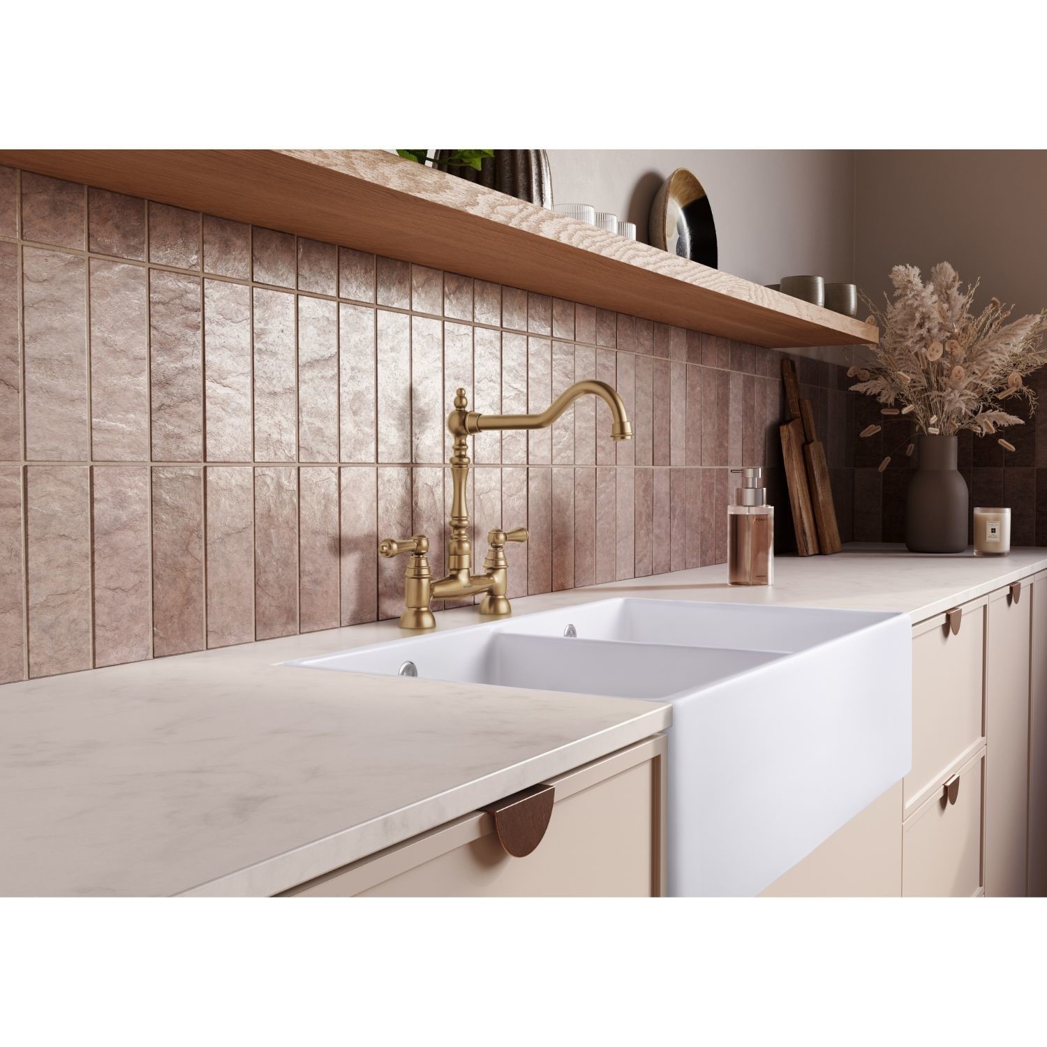 The Rangemaster Waverley Bridge Tap is the perfect combination of traditional elegance and practical performance. With its exquisite Antique Brass finish and intricately contoured dual handles, this tap adds a luxurious farmhouse feel to any kitchen.