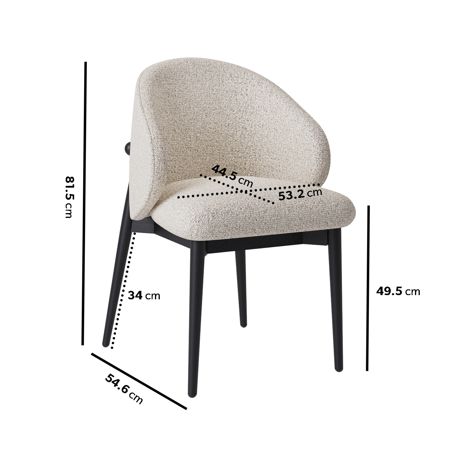 Elevate your dining area with the Troy Black Wood Dining Table. Featuring durable, sculptural legs and a sleek black finish, this 4-seater table offers plenty of room for meals, celebrations, and everything in between. Paired with Kori dining chairs, upholstered in a two tone cream and black textured fabric, these dining chairs brings a mid-century modern flair to your dining space with its timeless appeal. The exposed black oak back detail adds a modern, stylish touch. Designed for comfort, the foam-filled seat and curved backrest provide the ultimate support and comfort. This dining set is perfect for everyday meals, dinner parties, or casual gatherings. Together, they form a thoughtfully designed set that enhances everyday living and makes a lasting impression in any modern home.