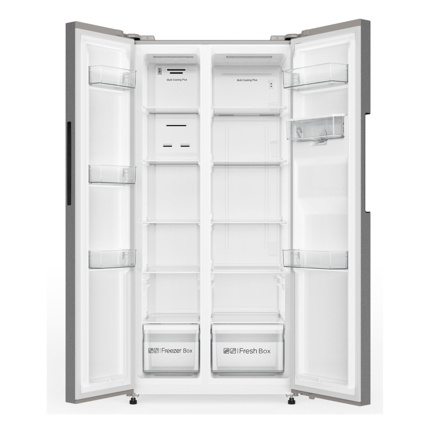 This American style fridge freezer delivers on space and features to help keep your food fresher for longer. The side-by-side design provides a spacious fridge and freezer, perfect for the larger family home. It has a Total No Frost technology, which keeps your items fresh, with no need to defrost. Smart AI Mode automatically adjusts the fridge and freezer temperatures based on the surrounding environment, helping maintain optimal freshness without any effort. You’ll also enjoy chilled drinks from the non-plumbed water dispenser – simply fill the tank. In the fridge, you’ll enjoy four adjustable shelves, so you can fit any item inside, while the salad crisper keeps your fruit and veg crisp. On the front, an LED control panel makes choosing your cooling level quick and easy, while the child lock prevents little fingers making any changes.