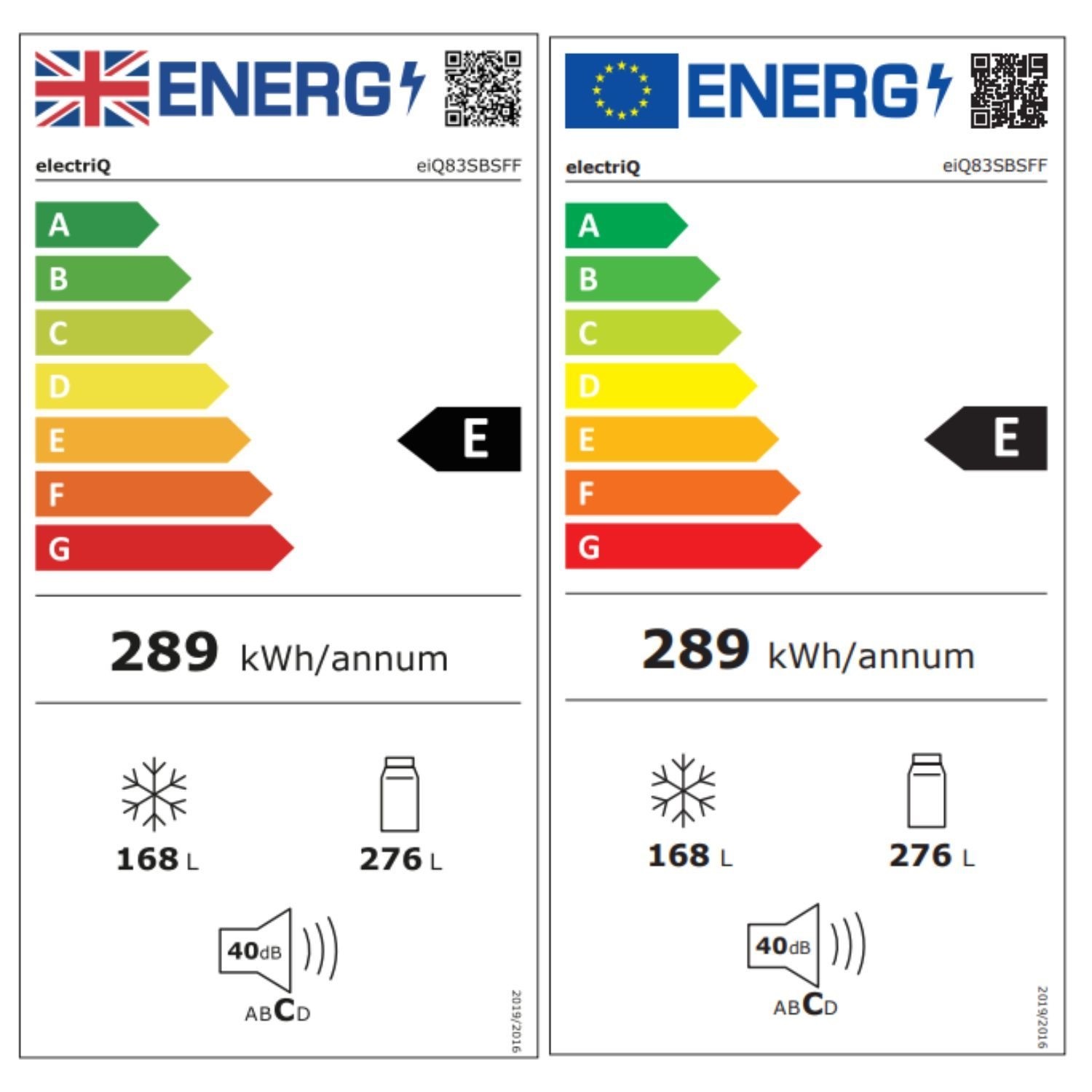 - Fridge capacity: 276L