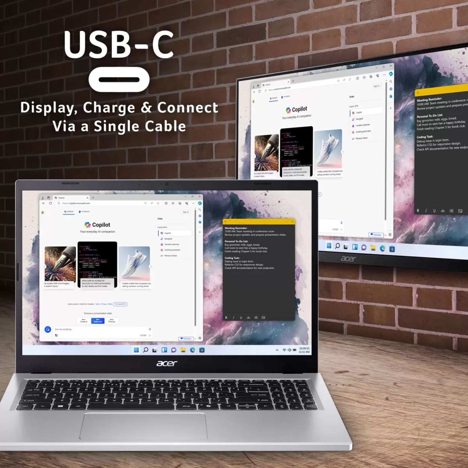 Experience the Aspire Go – a laptop that embraces simplicity without compromise. Thoughtfully designed for effortless use, it's equipped with all the essential features you need to stay connected and productive.
