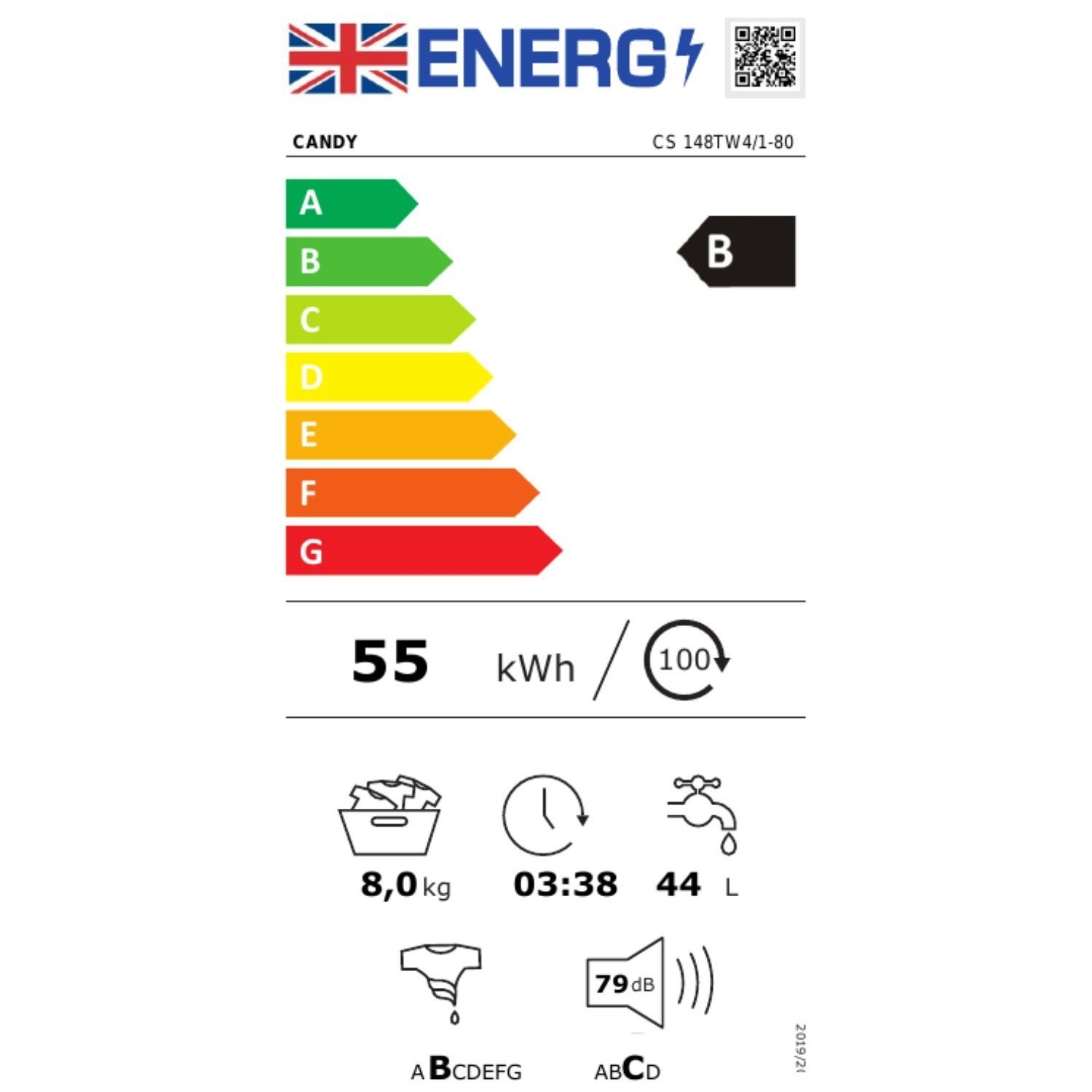 This washing machine is rated B-class energy, ensuring both superior performance and notable energy savings. By complying with the New Energy Label, it helps conserve energy, leading to potential savings on your bills and contributing to environmental preservation when compared with the G class.