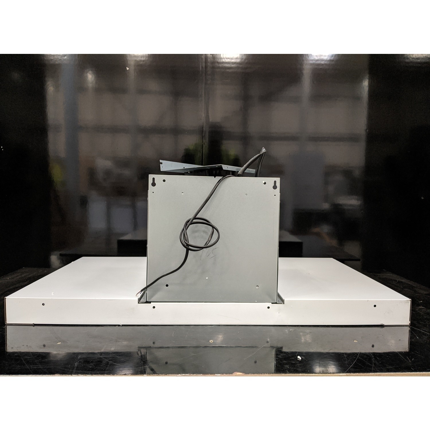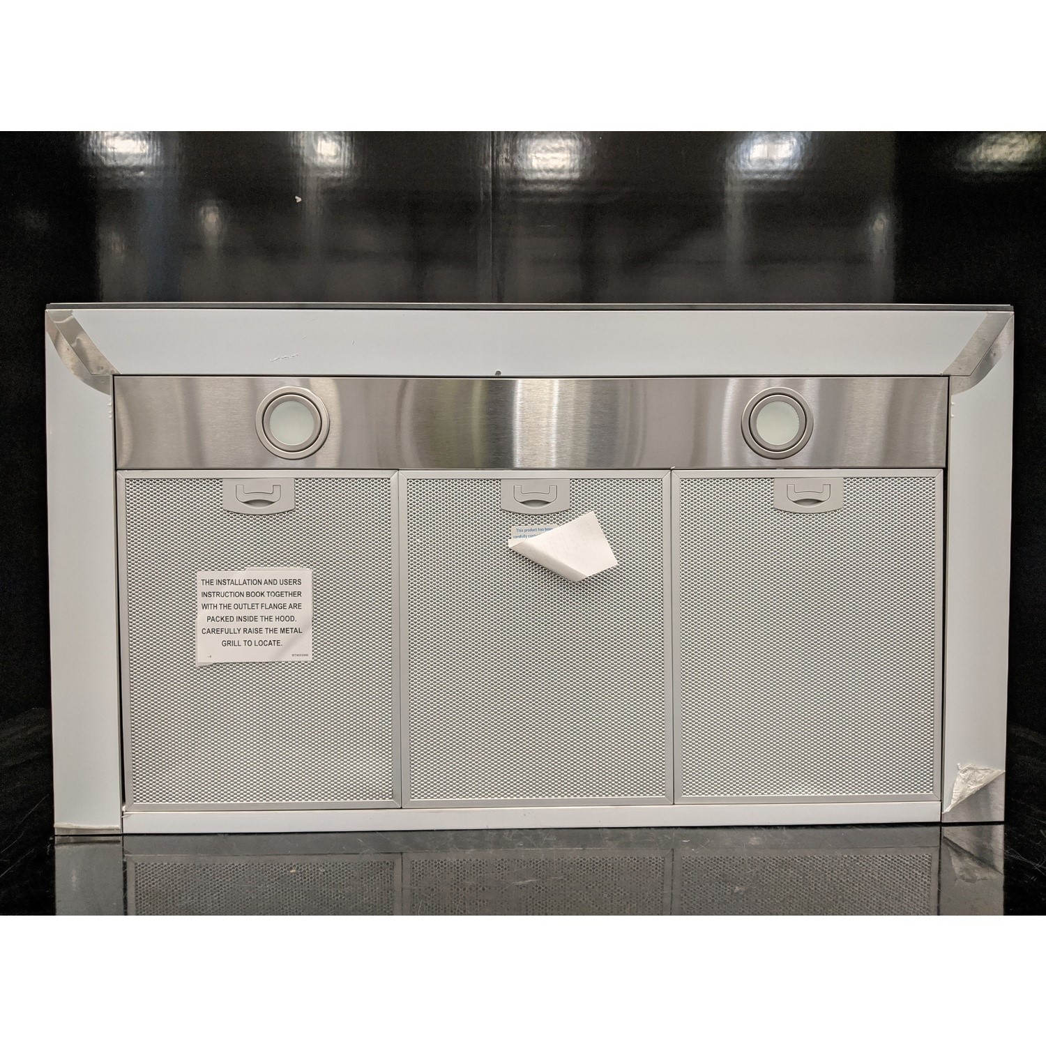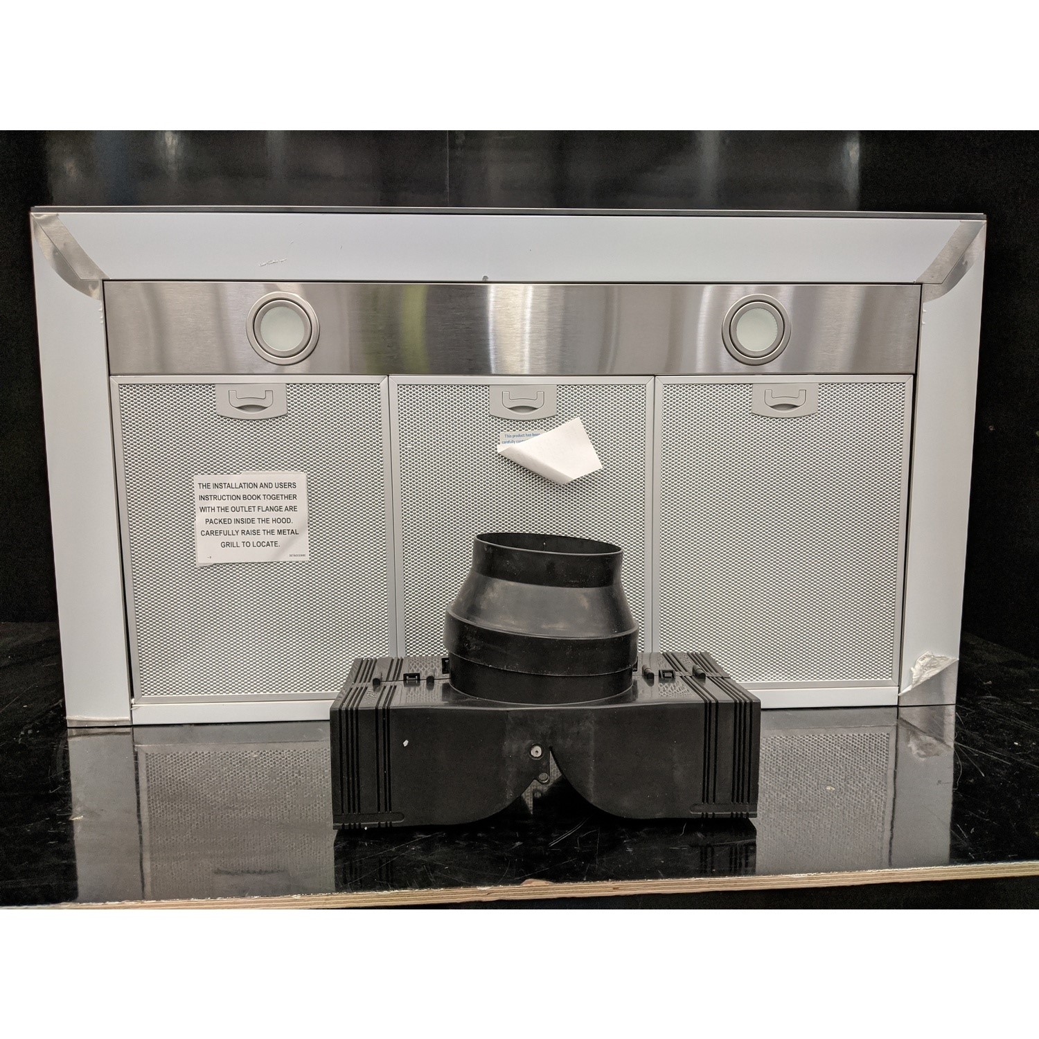 The CDA EVP91SS is a 90cm wide shelf-style chimney hood finished in stainless steel with a sexy glass feature across the front.