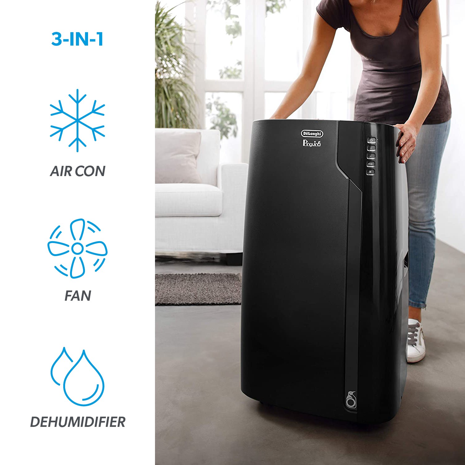 - Dehumidifying function removes excess moisture from the air