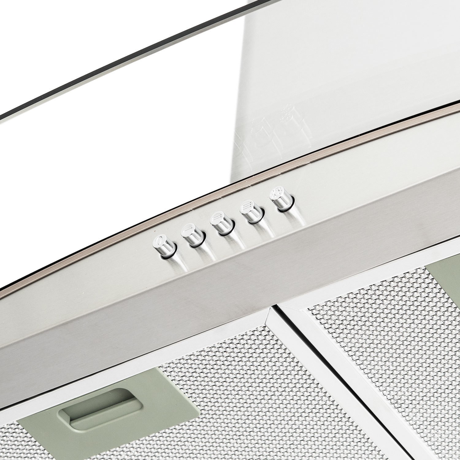 - Elegant curved glass design in stainless steel adds a modern touch to any kitchen