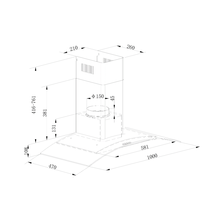 The electriQ Curved Glass Chimney Hood combines sleek design with reliable performance. Its stainless steel finish and curved glass canopy make it a stylish addition to any modern kitchen, while the powerful motor provides effective air extraction to remove cooking smells, steam, and grease particles. Ideal for medium-sized kitchens, it offers a maximum extraction rate of 291 m³/hr and operates quietly, making your cooking experience more pleasant.