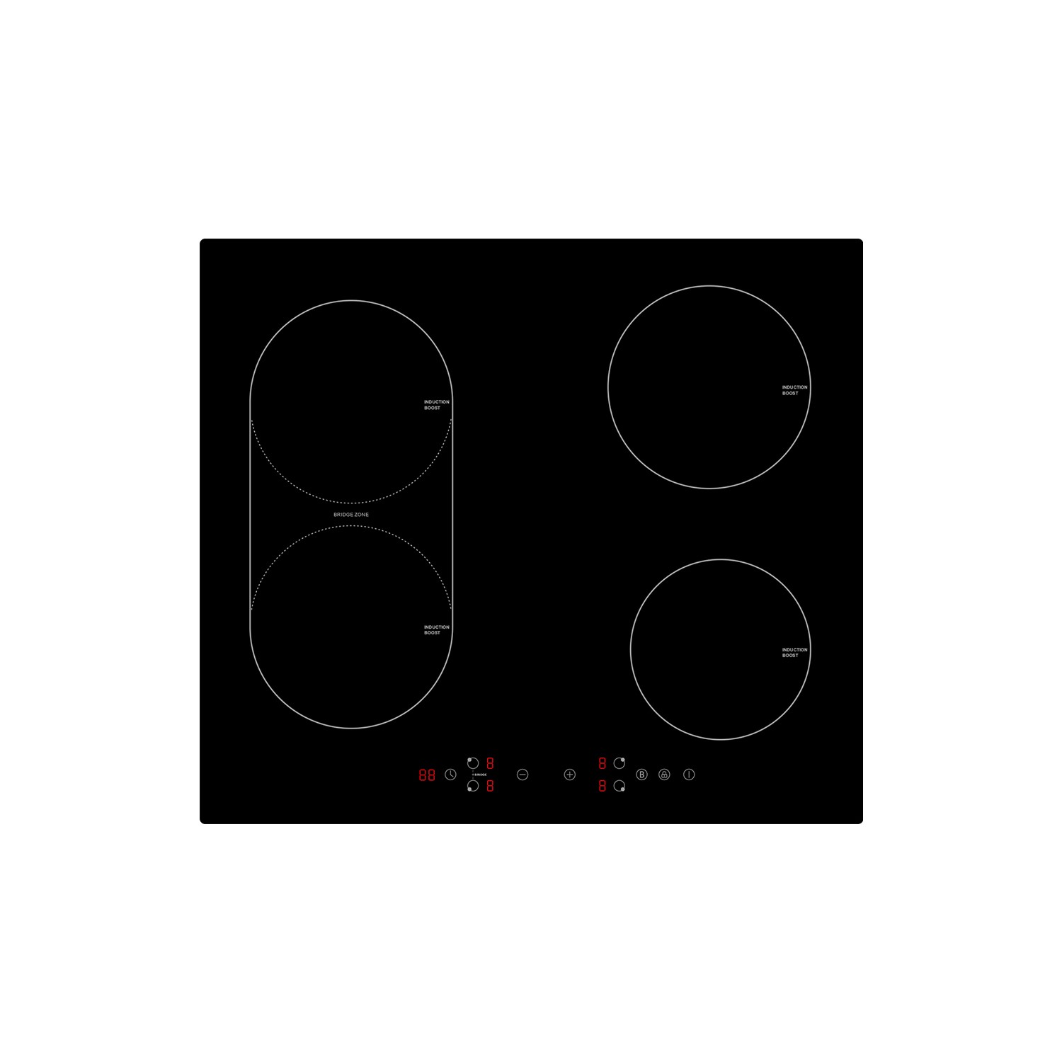 The control panel is conveniently positioned at the front of the hob for quick and easy access to all the cooking functions. It uses touch controls which are really responsive and easy to use, offering nine power levels to cook your meals to perfection. There's even a handy power boost function that can be used to give your cooking zone a speedy hit of extra heat when required, making it ideal for flash frying or bringing a pan to the boil faster. The timer function is great too as it can be programmed to switch off your chosen hob zone after a set amount of time to prevent any overcooking or burning. Or if you prefer, you can also use it as a simple minute minder to alert you when your set time has ended, rather than switching off.