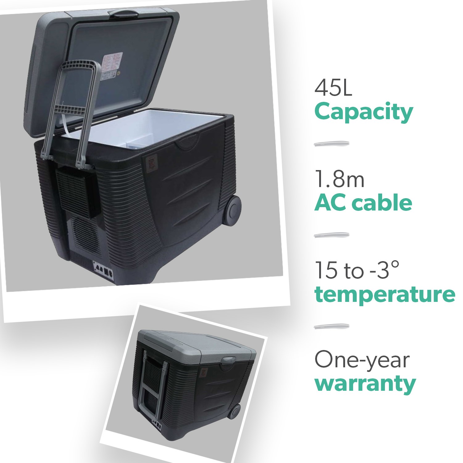 - Wattage: 12V - Cooling 55W/Warming 40W, 220V - Cooling 65W/Warming 55W