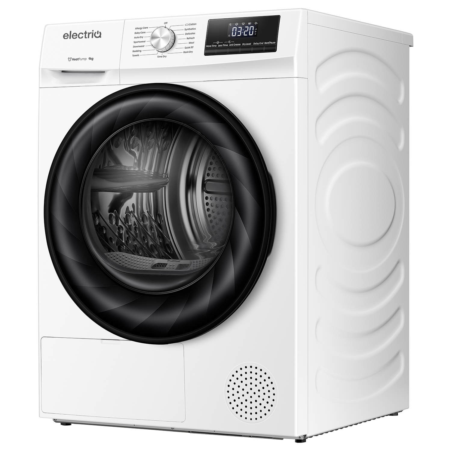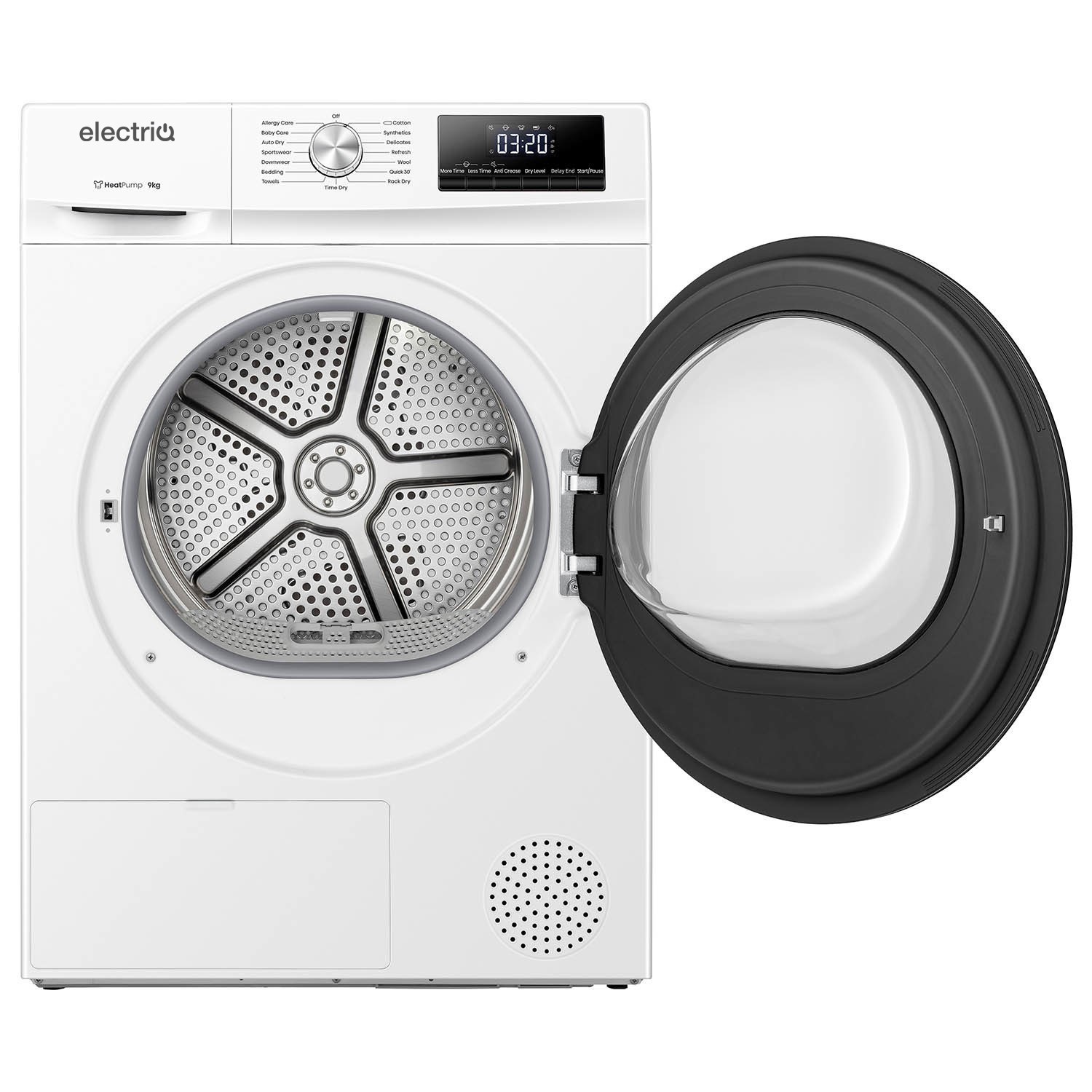 Step up your laundry game with this super-efficient Heat Pump Tumble Dryer from electriQ. It features a generous 9 Kg load capacity and is loaded with clever drying sensors that offer a more gentle drying process for your clothes, helping them to last longer. It also boasts 15 drying programs such as Cotton, Towels, Bedding, and Sportswear, as well as special programs such as Baby Care, Allergy Care, and Refresh. Plus, thanks to the Heat Pump Technology, it uses considerably less energy compared with other tumble dryers, helping you save money on your electricity bill.