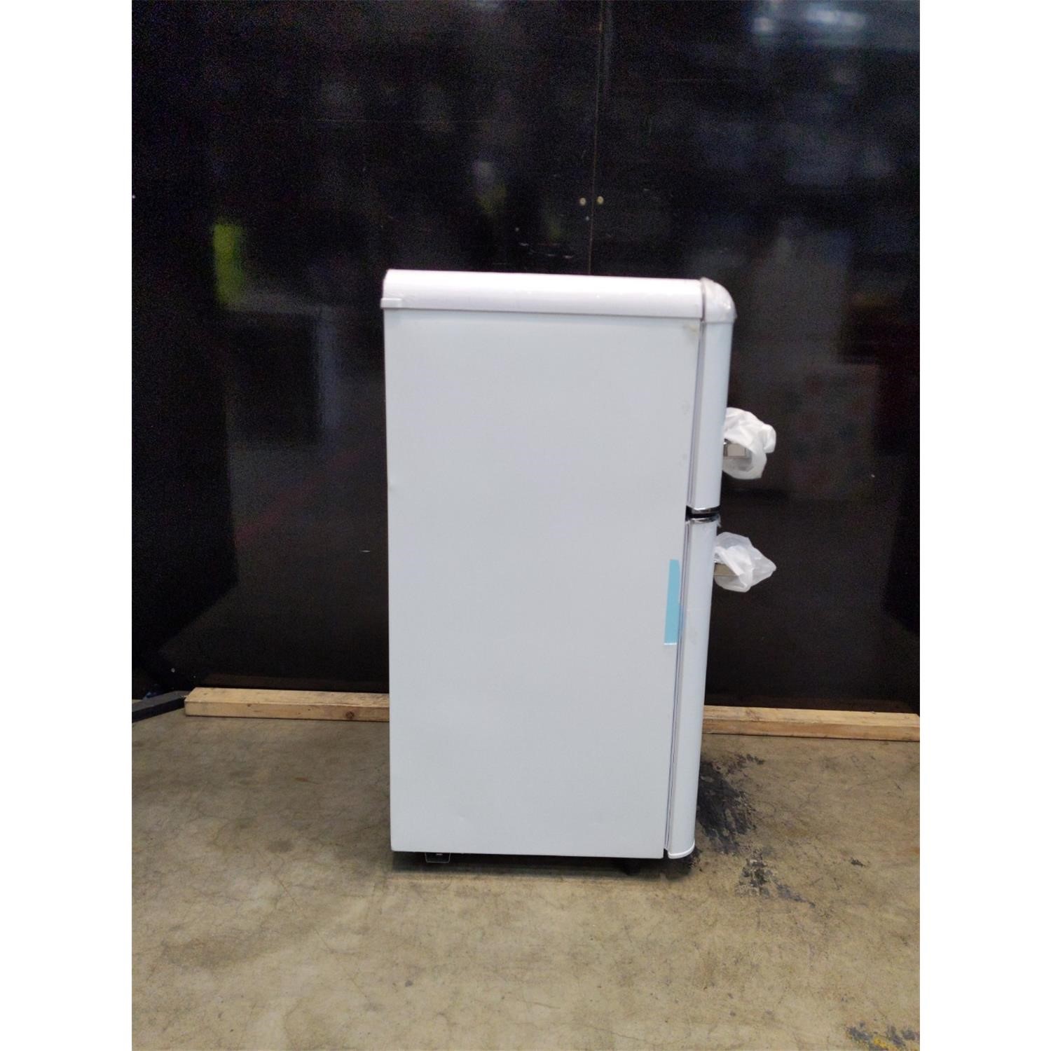 This retro-inspired fridge freezer is a size-savvy marvel, perfect for small families. The chic chrome metal handles add a touch of elegance, while the 39dB low noise level ensures a peaceful environment. Measuring only 48cm in width, it slots seamlessly into apartments and caravans, where space is limited. It's not just about looks, it's designed for modern living too. Inside, you'll find a full glass shelf for essentials, a roomy salad crisper, and two-door balconies for easy access to milk and condiments. Plus, the flame-retardant metal back enhances safety and peace of mind.