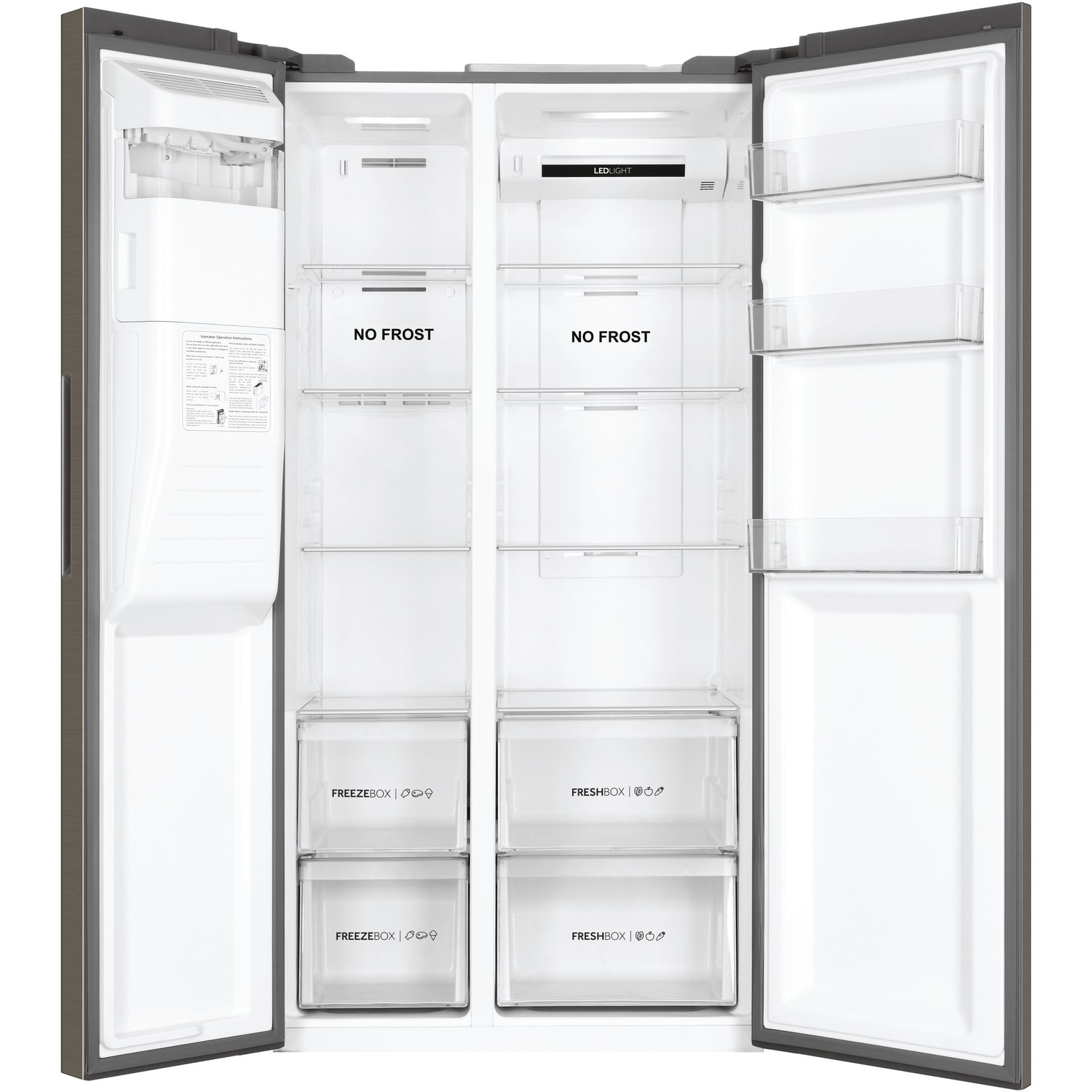 Haier's highly practical two-door American-style fridge-freezers each contain Haier’s game-changing Fresher Tech® cooling technologies. These revolutionary innovations manage and regulate the interior compartments of yHaier's refrigerator to ensure conditions are always optimal in each area of the refrigerator so yHaier's food stays fresher for longer. These impressive XXL capacity refrigerators (up to 521 litres) integrate Haier's knowledge of how to create usable products through precision engineering. This means they not only take care of yHaier's groceries, but they’re also easy to use and durable. The result is an energy-efficient refrigerator capable of adapting to fit any family’s needs.