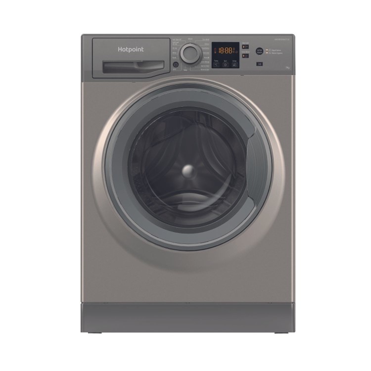 Refurbished Hotpoint AntiStain NSWM7469GGUK Freestanding 7KG 1400 Spin Washing Machine Graphite