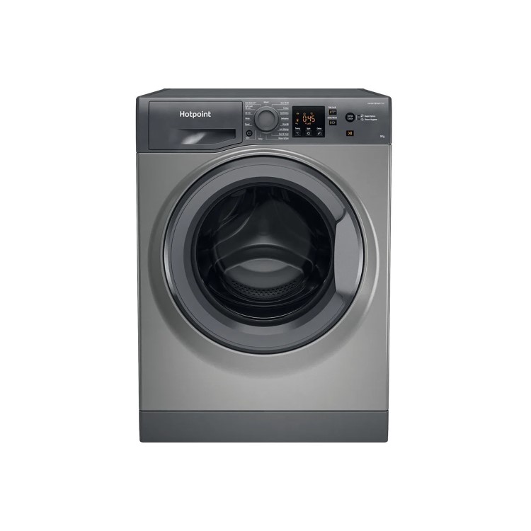 Keep your clothes as fresh as the day you bought them with the 9kg 1600 spin Hotpoint NSWR 963C GK UK N Washing Machine, designed to protect your clothes against stubborn stains alongside cycles that are high performing. The Steam Hygiene cycle provides the ultimate care and protection for a totally hygienic wash. Steam hygiene injects steam directly into the drum at the end of the cycle, removing up to 99.9% of the most common bacteria without the use of chemical additives. With the Anti Stain cycle, you can ensure that this machine is able to tackle the most common household stains without the need to pre-treat your clothes, the tailored drum motions and water monitoring technology is the science behind Hotpoint's stain removal. Reduce bacteria build-up by 99.99% in your washing machine’s door seal thanks to antimicrobial protection, so your machine stays perfectly clean. Discover a wide range of wash programs including the 30-minute rapid cycle as well as steam cleaning cycles for hygiene and freshness in a more natural way. Easily operated digital display making it convenient for you and your family.