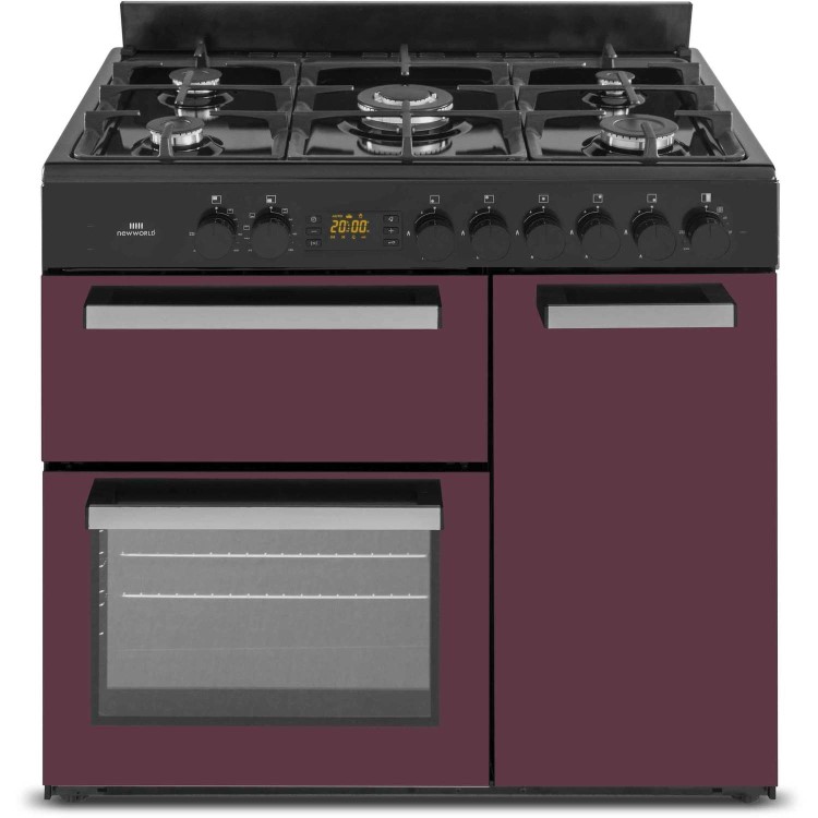 New World 90cm Triple Cavity Burgundy Dual Fuel Range Cooker