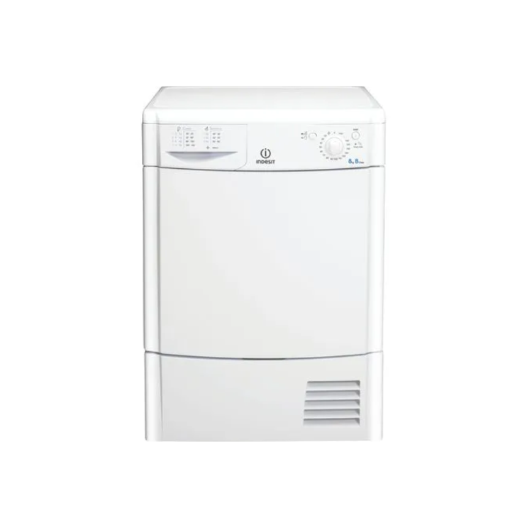 The Indesit IDC 8T3 B Freestanding condenser Tumble Dryer with 8kg drum capacity comes in a White finish to truly set of your kitchen with style. Anti-tangle technology, which uses a reverse tumble action to ensure clothes dry evenly and without tangling together, makes sure your laundry is as crease-free as possible. Finally, if you can't unload your dryer as soon as it's finished, our Anti-Crease function will make sure your laundry is gently tumbled after the drying cycle is complete, to minimise creases and save you precious time.