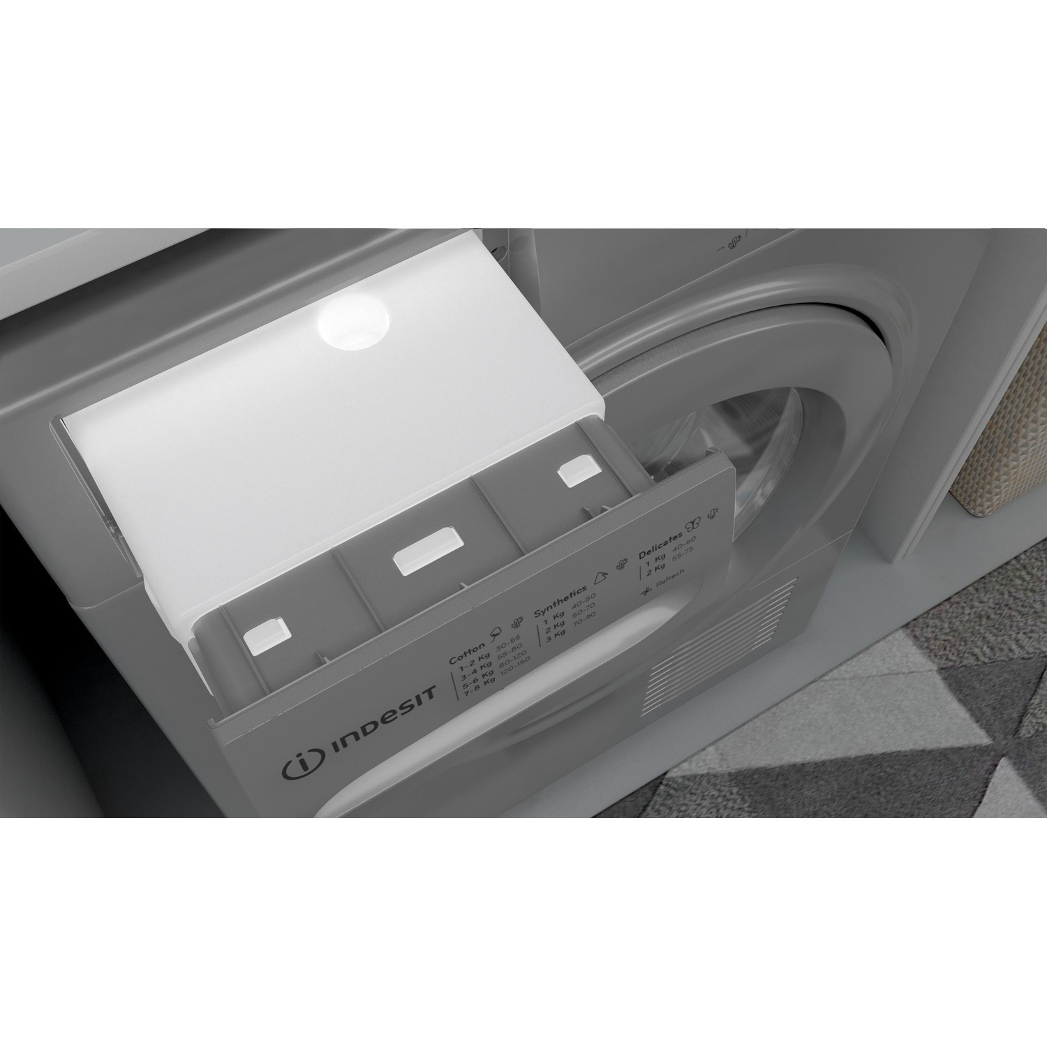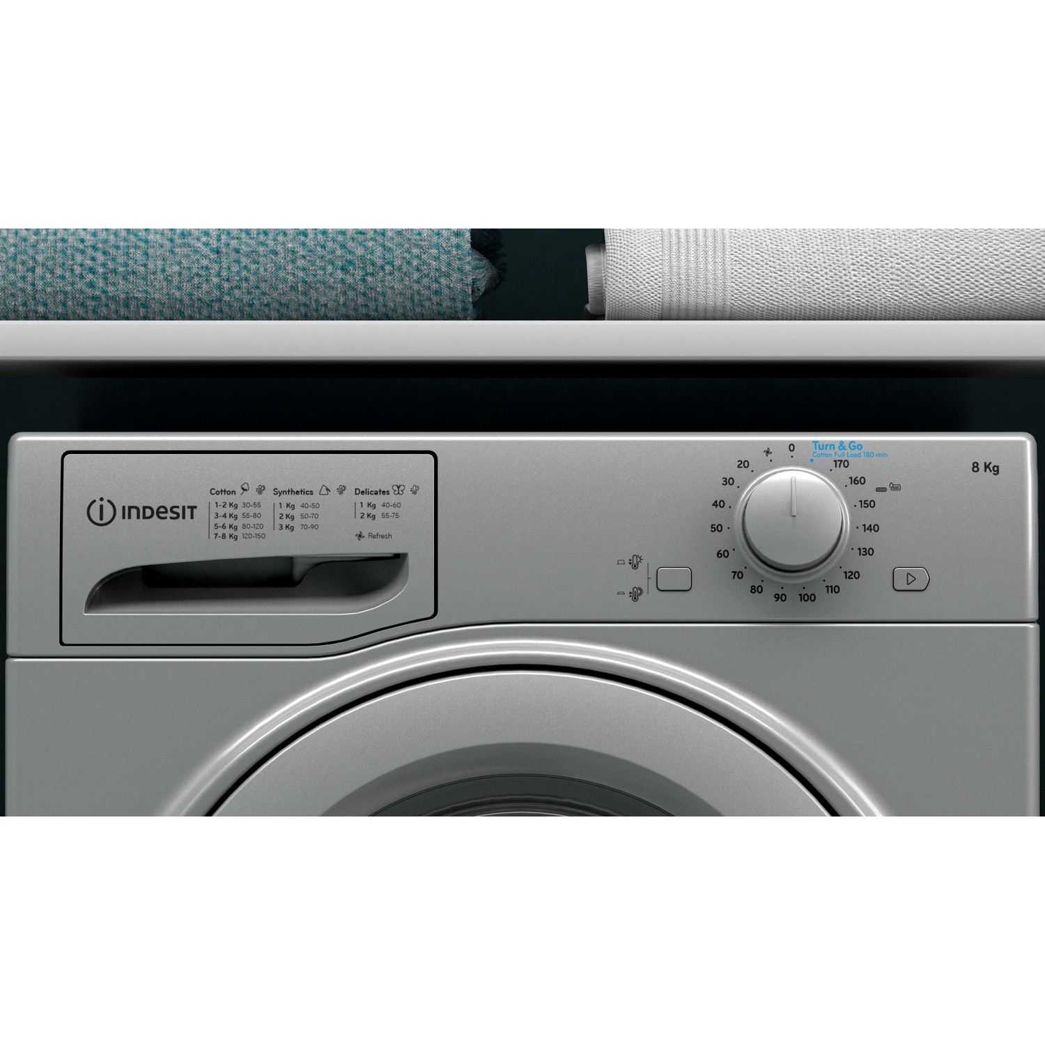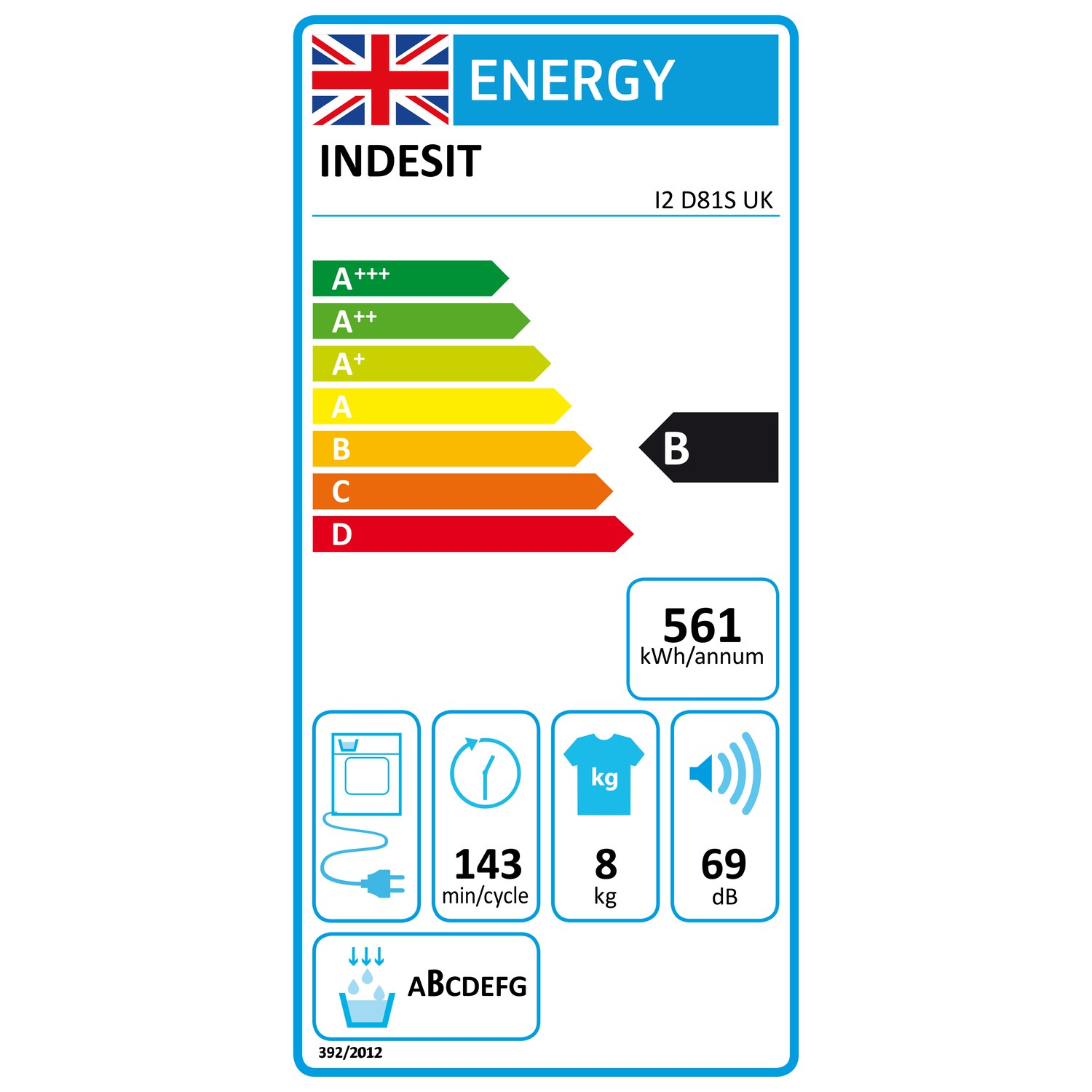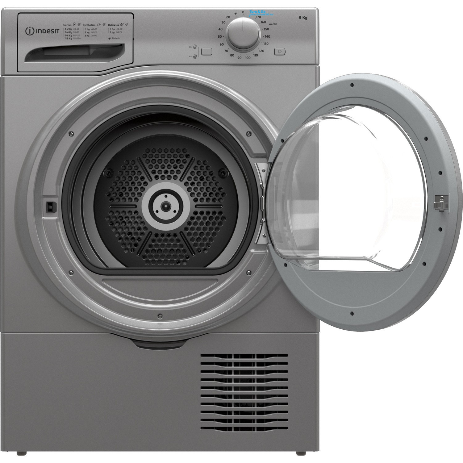 The Indesit I2 D81W UK Freestanding condenser Tumble Dryer with 8kg drum capacity comes in silver to suit any style of kitchen. Just one turn is all it takes to activate the Turn&Go technology and start a daily drying cycle for cottons & synthetics. Just one turn to dry your clothes, its as simple as that. The Purse Filter feature makes it quick and easy to empty and clean your filter keeping it fluff free ensuring great performance from the dryer as long as possible.
