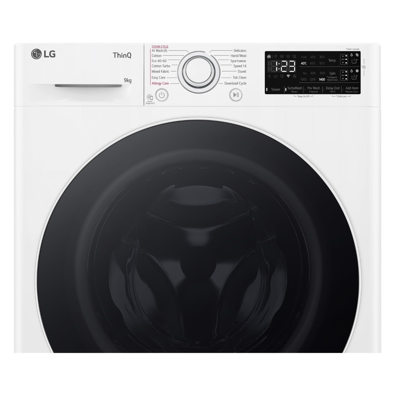 Built for convenience, this smart washer includes ezDispense™ automatic dosing, which releases just the right amount of detergent each time, no measuring needed. Choose from a wide range of programmes, including Allergy Care, AI Wash, Speed 14, and Tub Clean, or save time with the TurboWash function. The steam option reduces allergens by up to 99.99%, perfect for families or sensitive skin. With handy features like Delay End, Add Item, Smart Diagnosis, and energy-saving A-10% efficiency, it’s a well-rounded machine that works around your schedule.