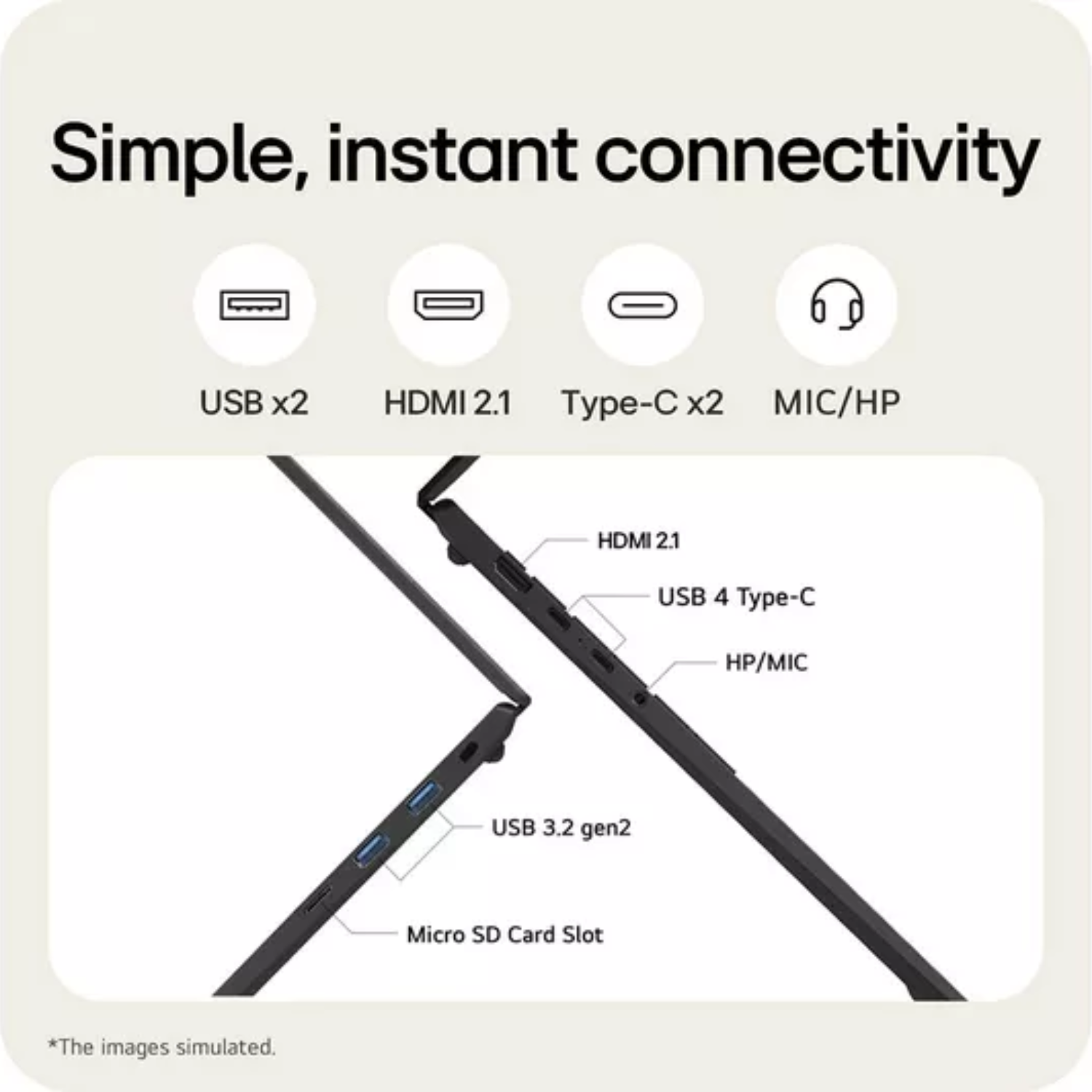 Connect with gram +view, high-speed storage, large monitors, and various other devices. With many ports, you can enjoy a plug-and-play paradise of productivity and entertainment.
