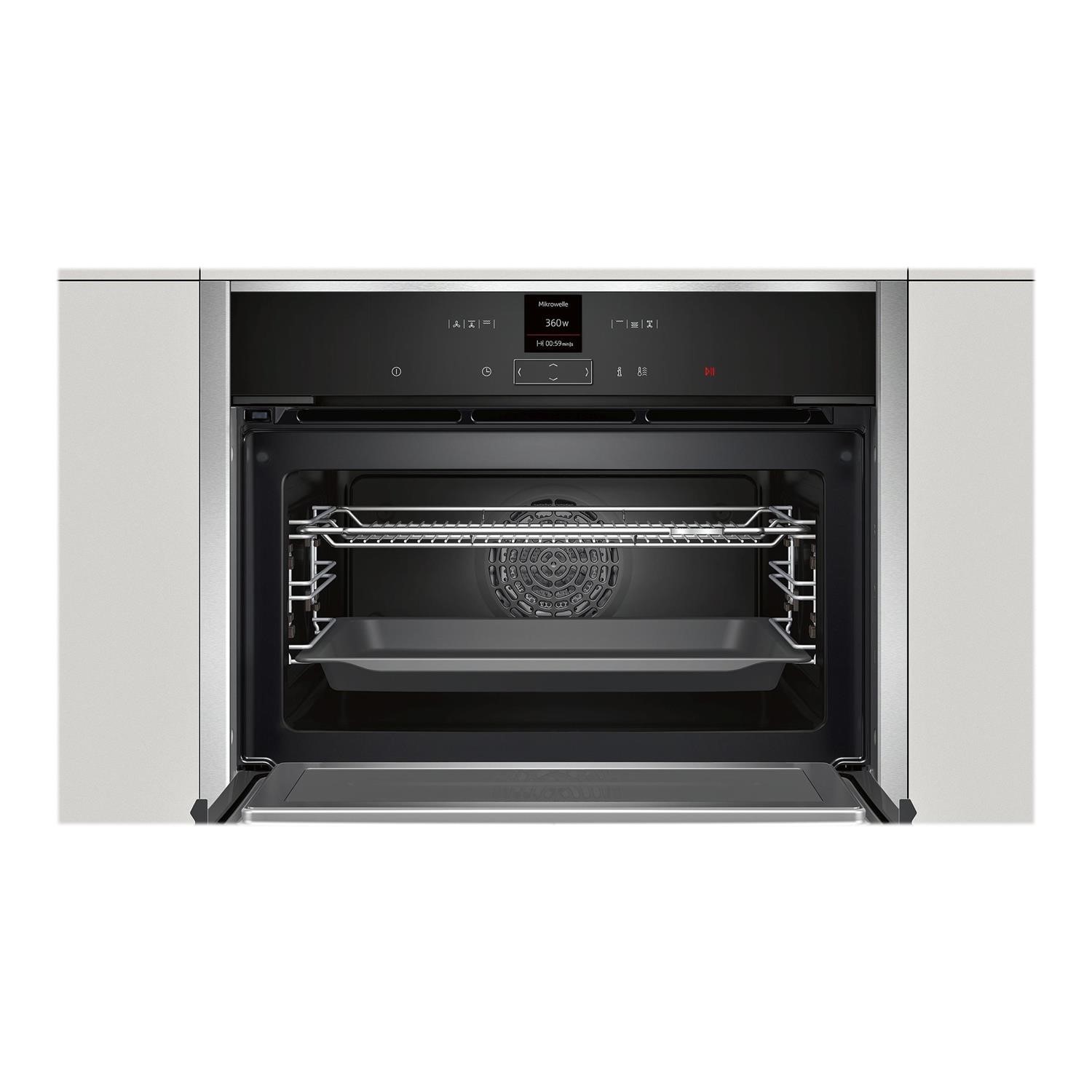 The Neff C17MR02N0B integrated microwave combination oven features a range of heating methods and automatic programmes to make your cooking easier and more varied. Enjoy more even cooking results with InnoWave technology, and choose from 5 different power levels ranging from 90W to 900W.