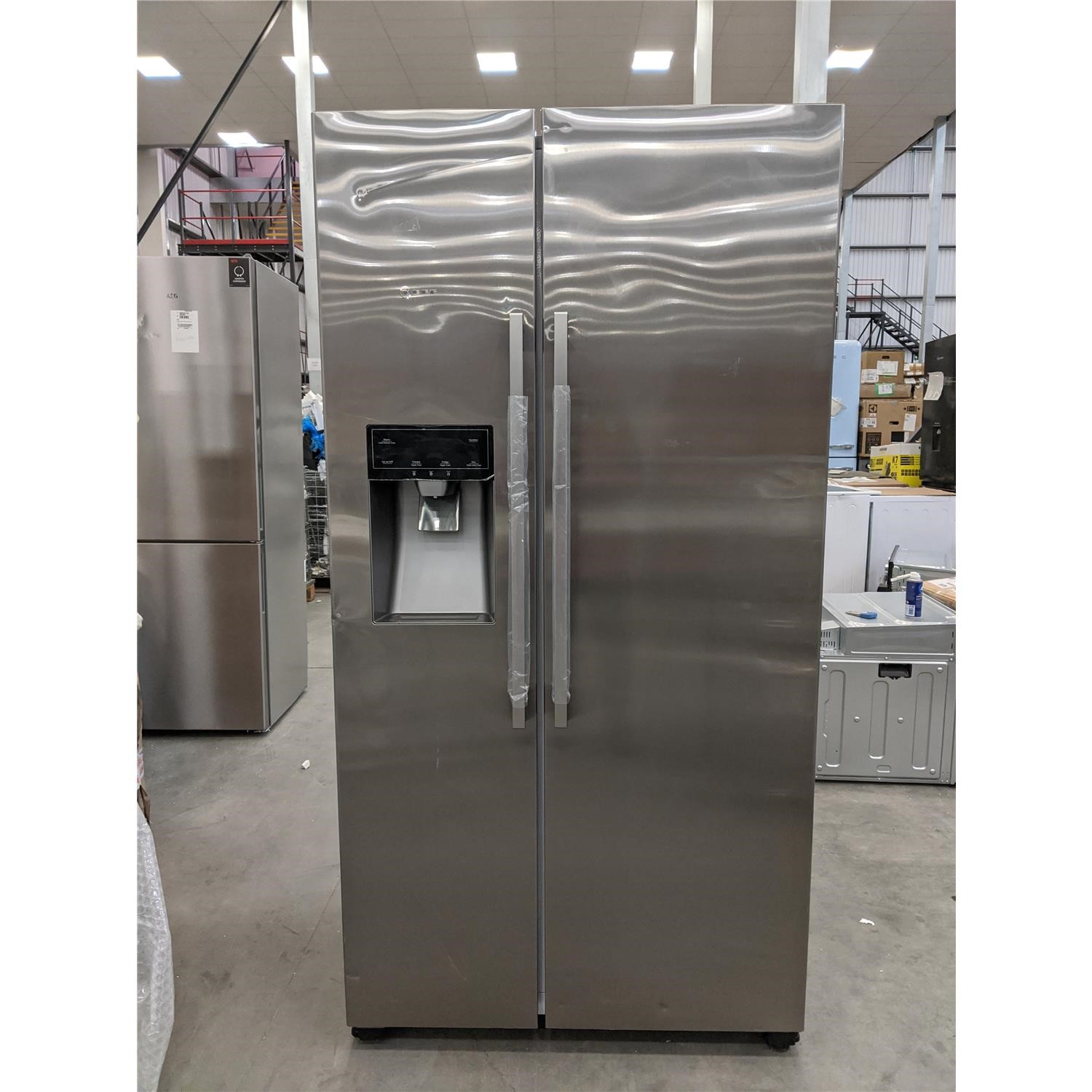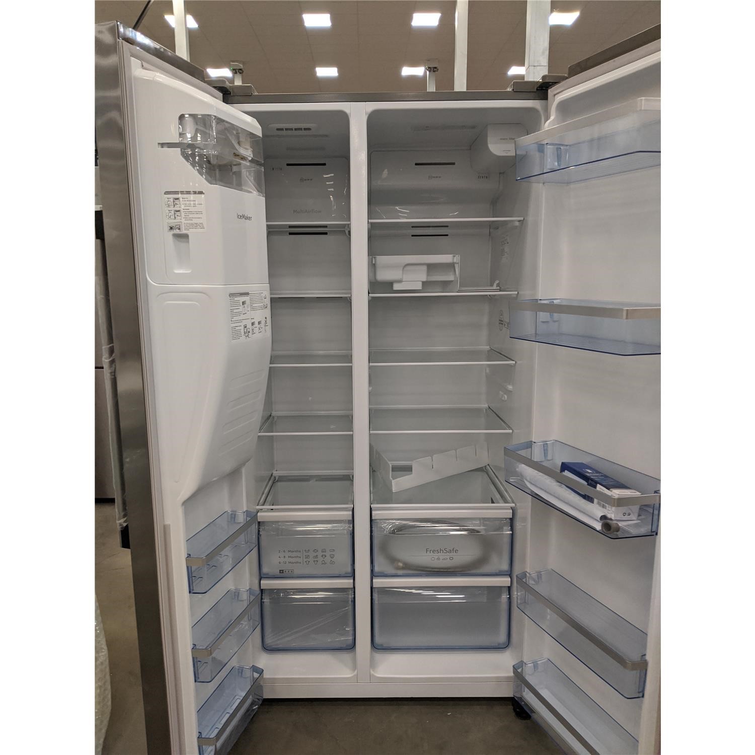 American Side-by-Side with Antifingerprint stainless-steel doors is extremely convenient with FreshSafe, ice & water dispenser and NoFrost.