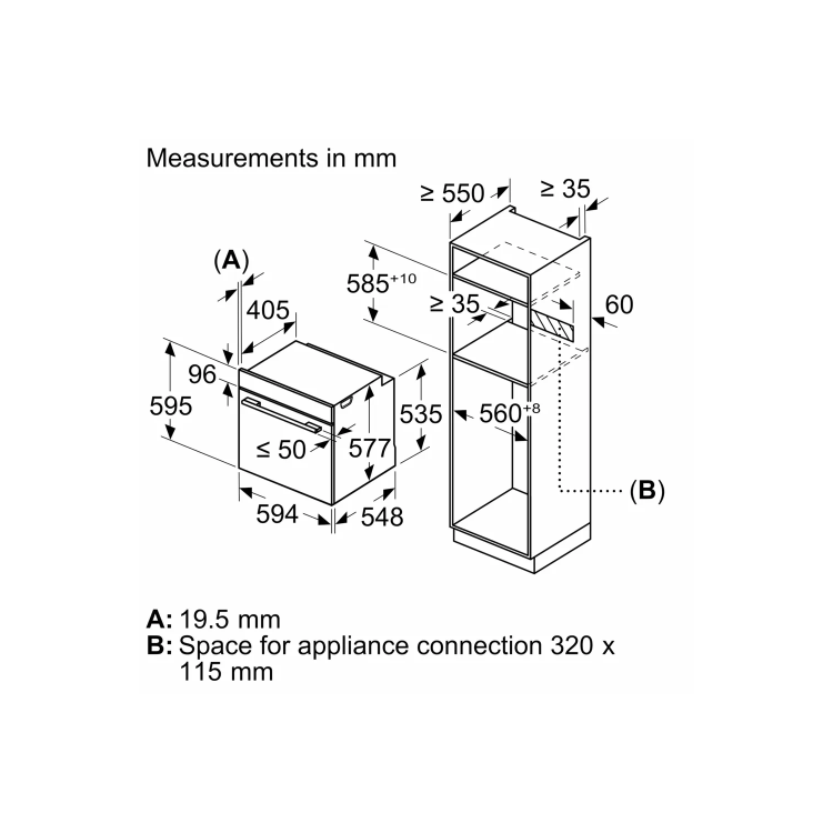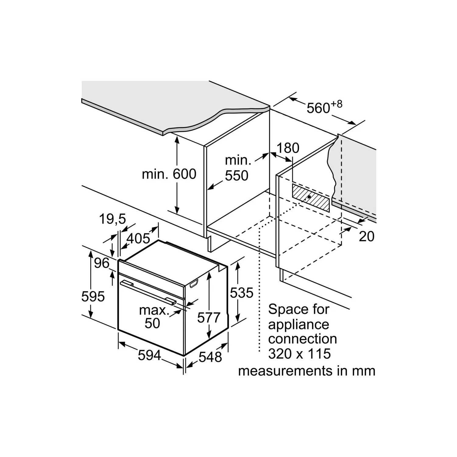 - Niche dimension (hxwxd): 585 mm - 595 mm x 560 mm - 568 mm x 550 mm