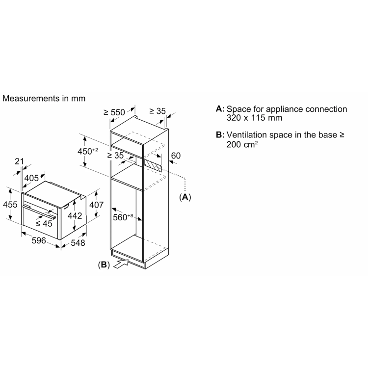 - Niche dimension (hxwxd): 450 mm - 455 mm x 560 mm - 568 mm x 550 mm