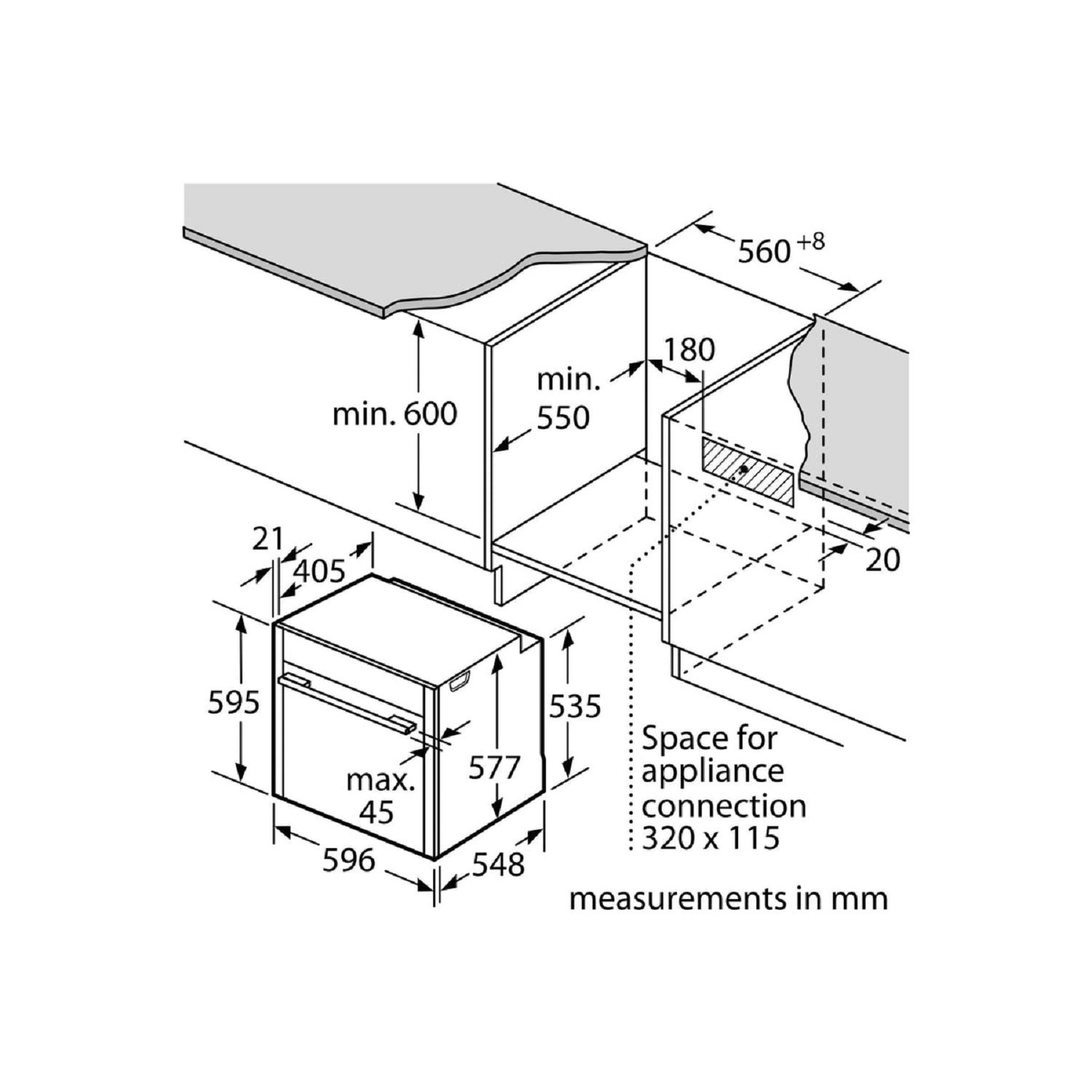 - Niche dimension (hxwxd): 585 mm - 595 mm x 560 mm - 568 mm x 550 mm