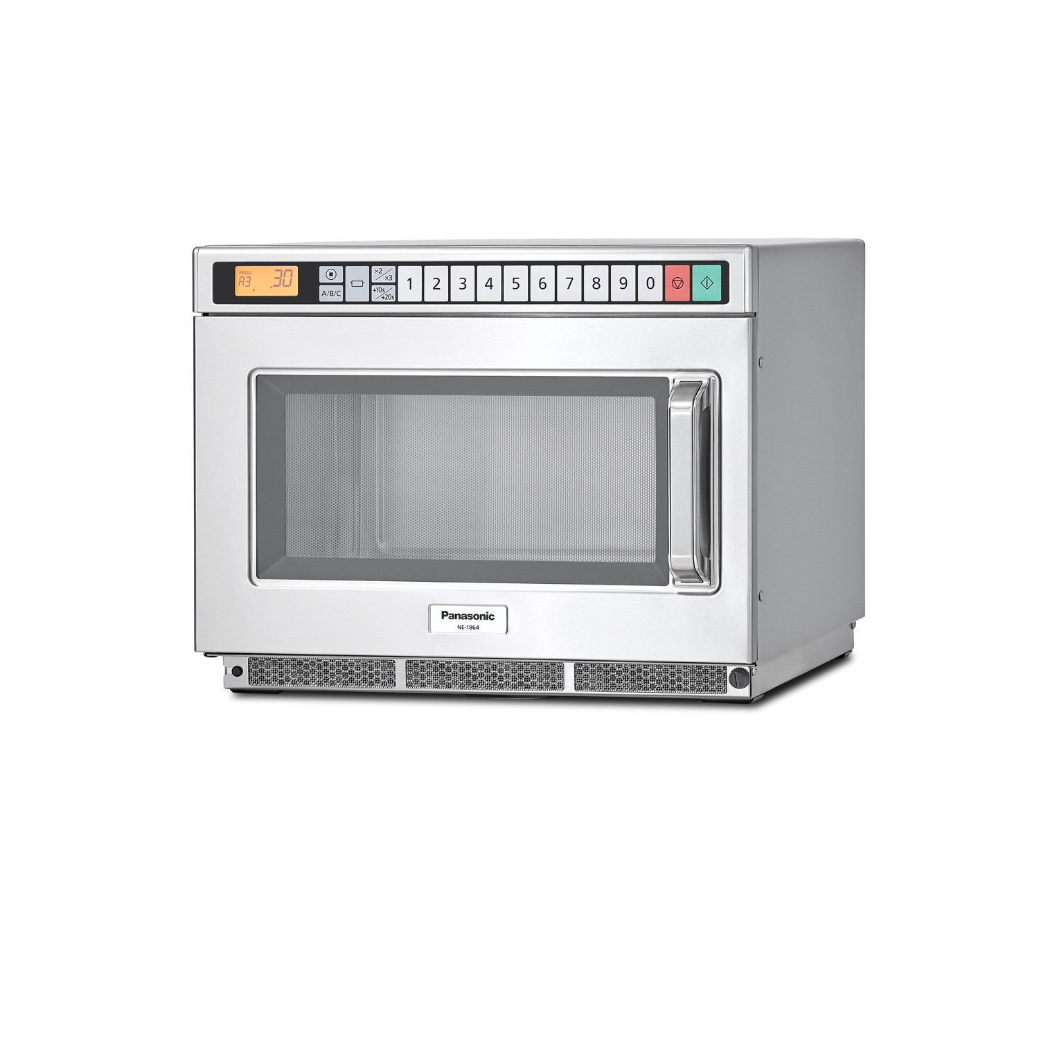 Constructed with a high-grade stainless steel body and cavity, the NE-1864 is built to withstand the physical demands of a commercial site. For immediate deployment, the unit is fitted with a 13A plug, requiring no specialized hardwiring despite its heavy duty power output. The flat ceramic base replaces traditional turntables to maximize usable internal space and eliminate moving parts that are prone to failure in commercial settings. This model includes a specialized cavity liner which is 100% recyclable and food safe, offering an additional layer of protection against burnt food particles.