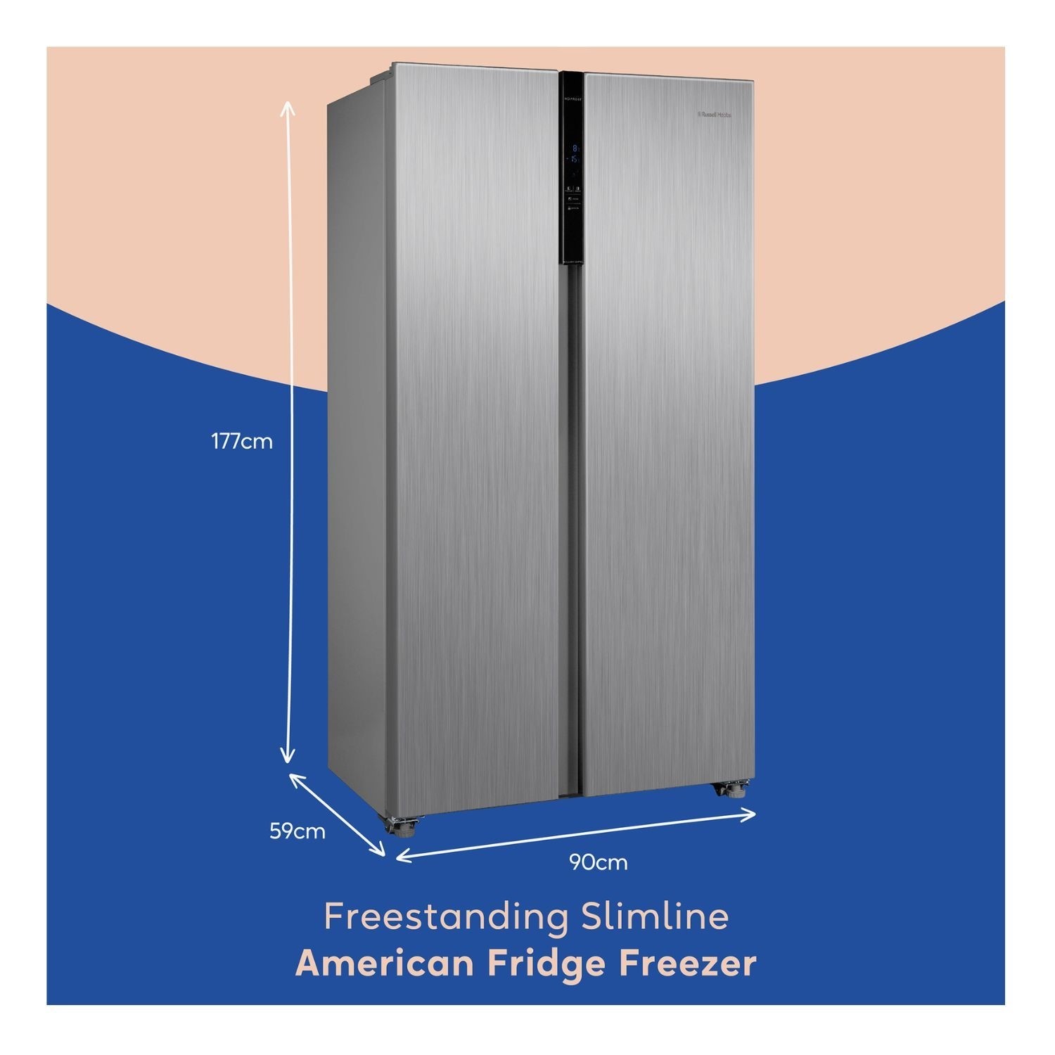 The Russell Hobbs 70/30 split freestanding American Fridge Freezer offers a generous capacity of 291L in the fridge compartment combined with 151L in the freezer compartment and can hold an impressive 19 bags of shopping