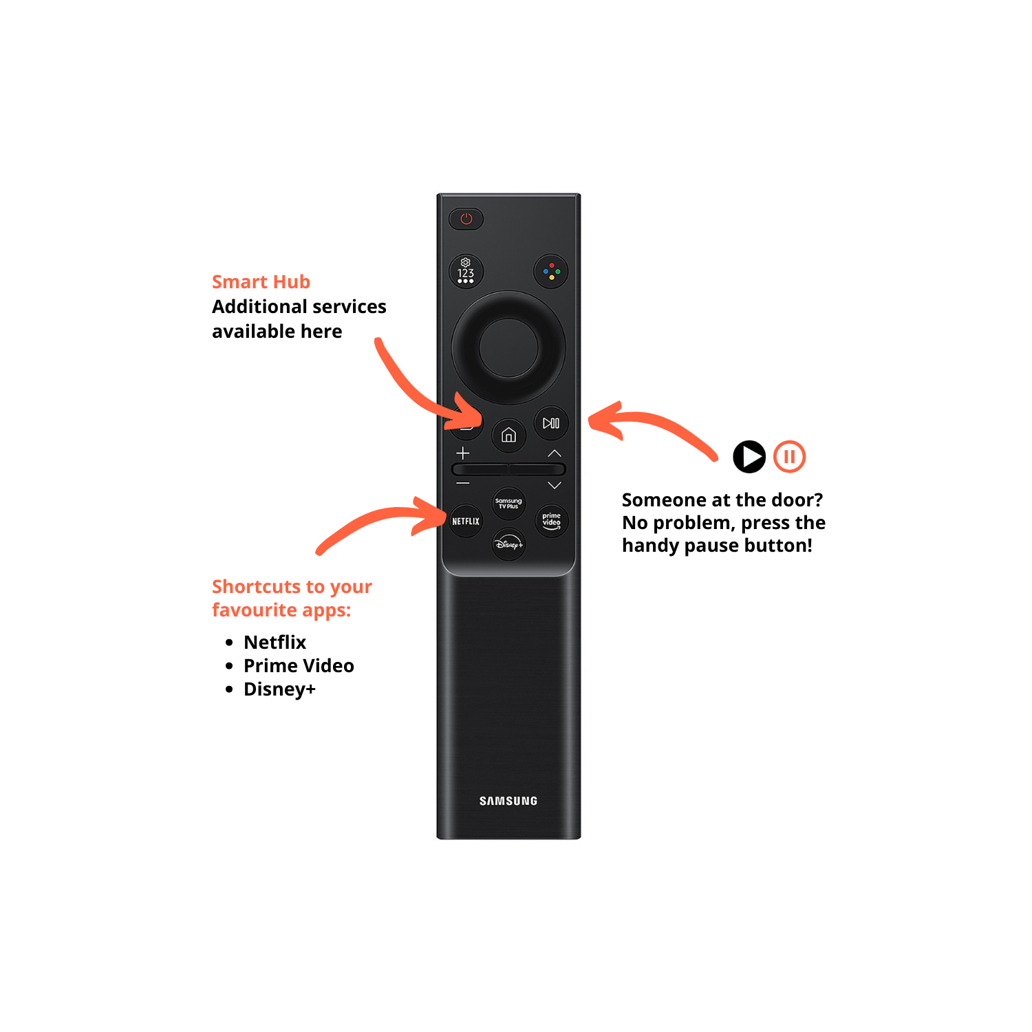 It’s never been easier to enjoy TV. Dive into a huge collection of 4K films, TV shows, and all your catch-up TV apps – including Netflix, Disney+, Apple TV, NOW TV and BT Sport apps – all in one place. Not sure what to watch? Our easy-to-use and customisable Smart Hub platform gives you tailored recommendations.