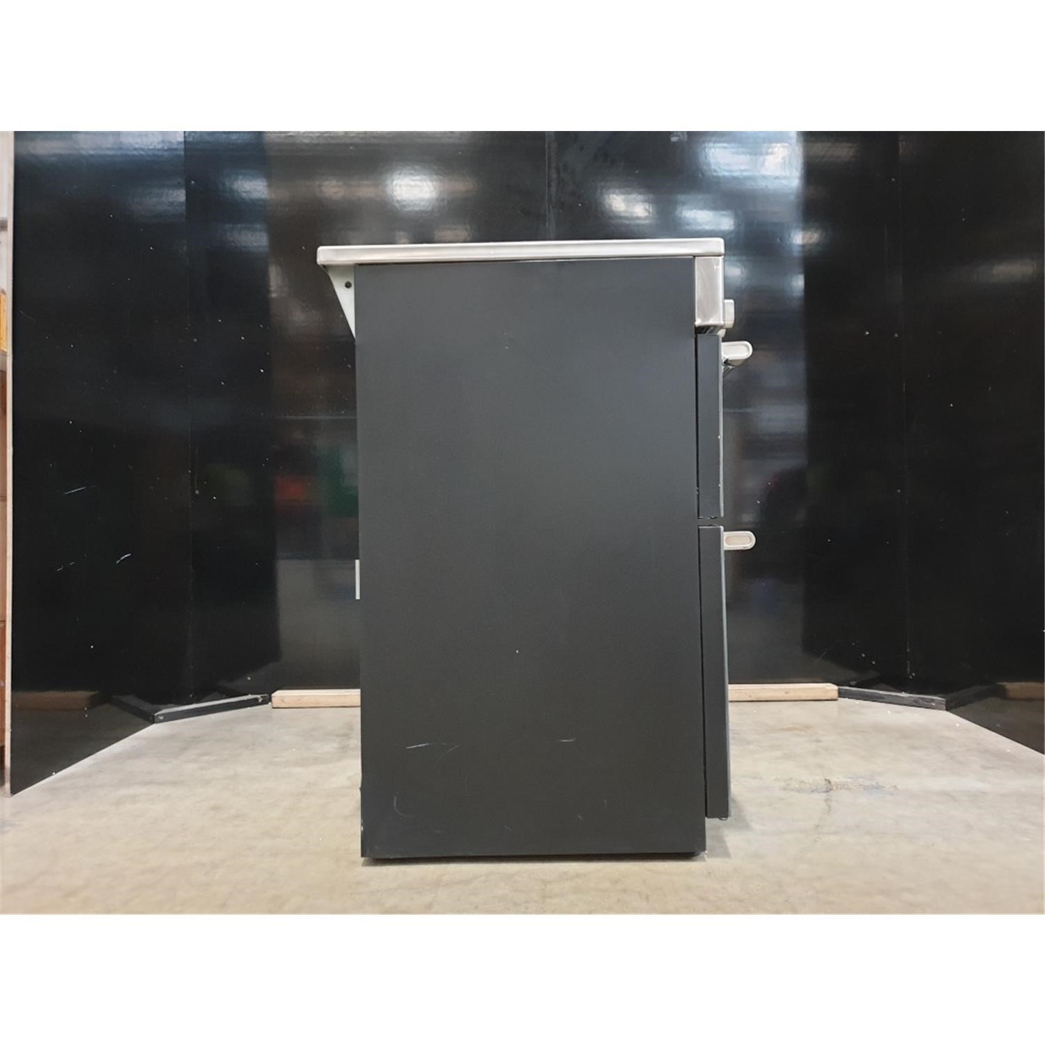 110cm dual fuel range cooker with a 7 burner gas hob, conventional oven & grill, multifunction main oven, fanned second oven and dedicated slow cook oven.