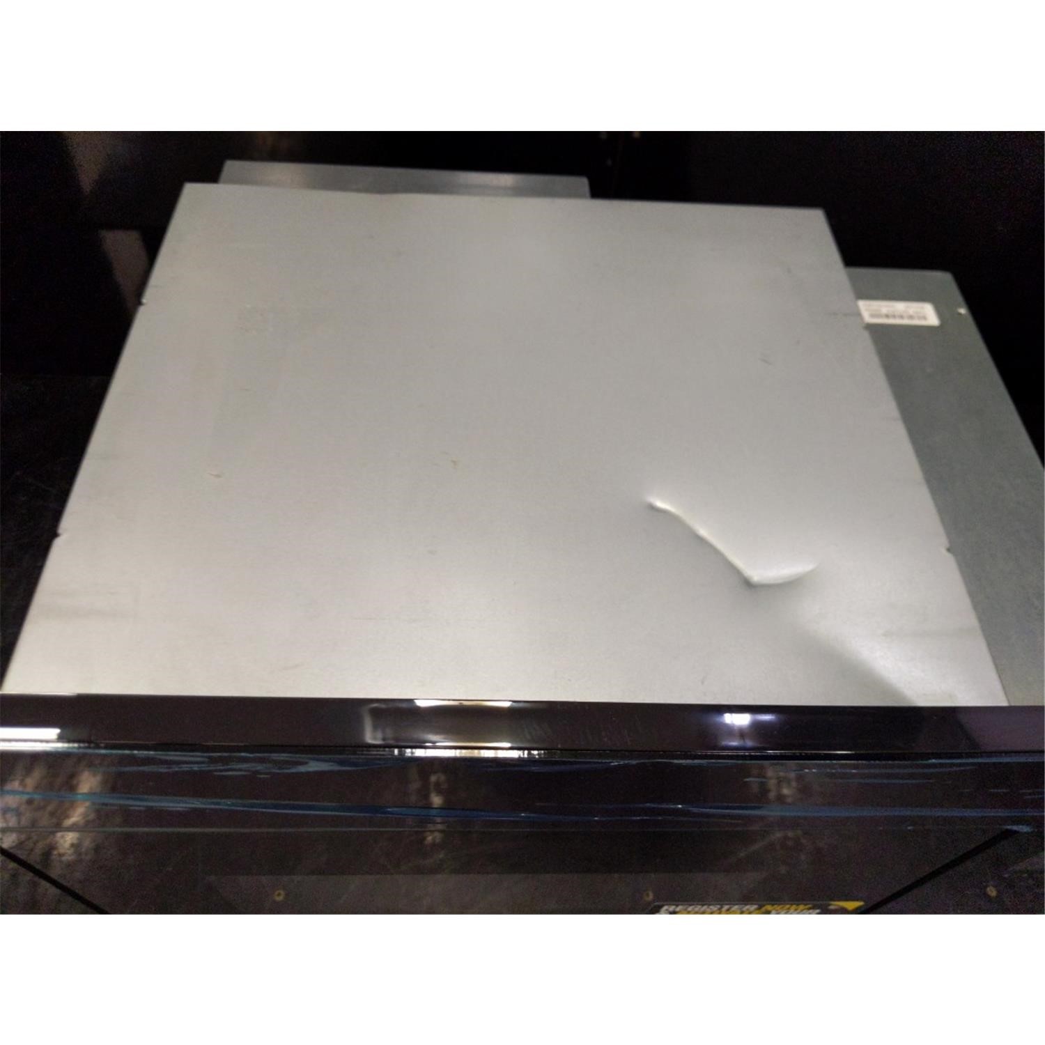 The microwave's touch-activated door opens instantly. As it is electronic, unlike the more common spring-loaded mechanism, it requires minimal effort to open the door.