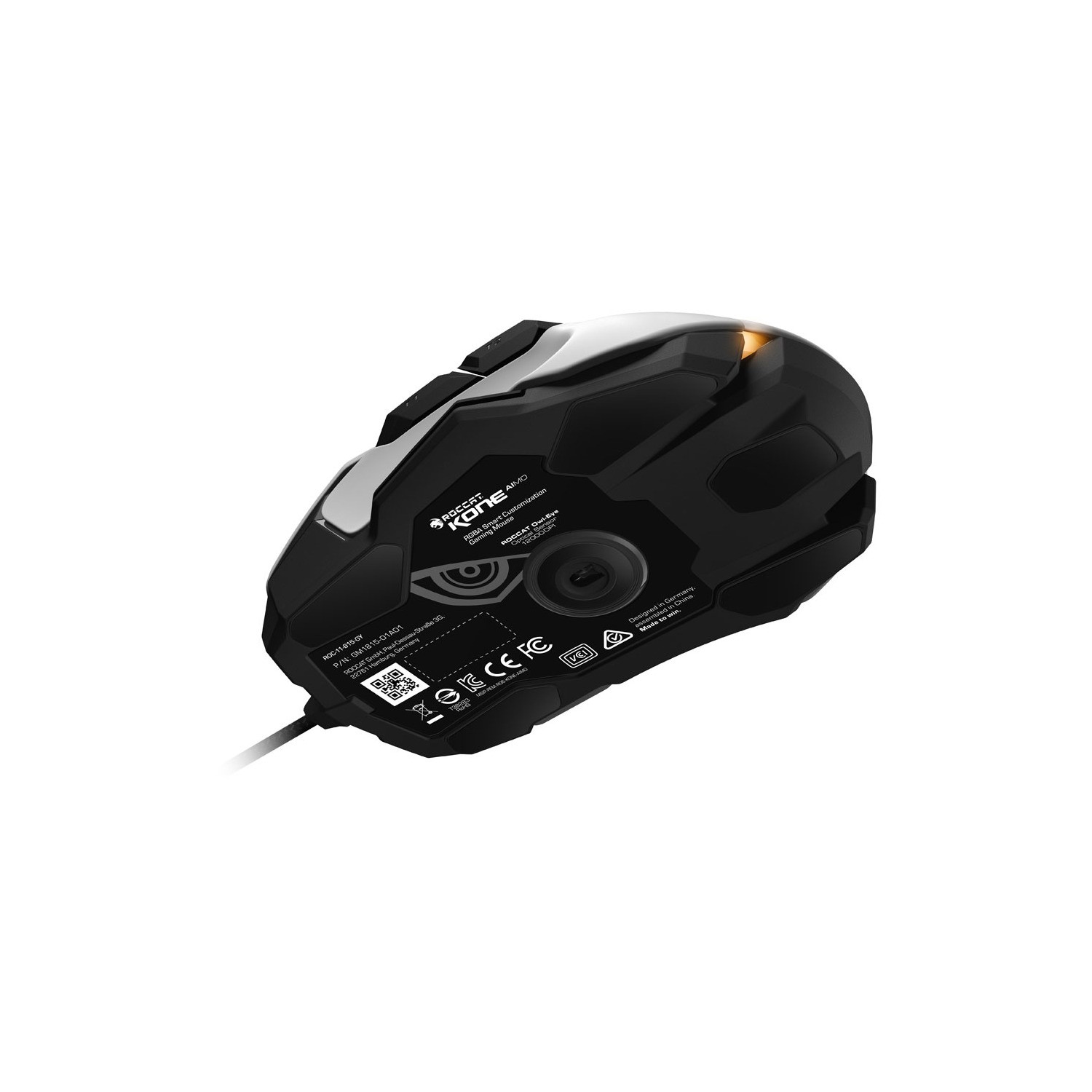With a striking design and a stunning feature set, the Kone AIMO triumphantly channels the legacy of its predecessor. Released in 2007, the original Kone was born as the first ROCCAT product, setting a new industry standard with its ground-breaking innovations. Pioneered using ROCCAT's signature know-how coupled with the input of almost 30,000 surveyed gamers and Kone-lovers, the Kone AIMO continues the ten years of rich tradition. It boasts refined ergonomics with enhanced button distinction, but what truly sets it apart is its RGBA double light guides powered by the state-of-the-art AIMO intelligent lighting system plus its responsive and remarkably accurate Owl-Eye optical sensor. The Kone AIMO truly travels at the speed of light.