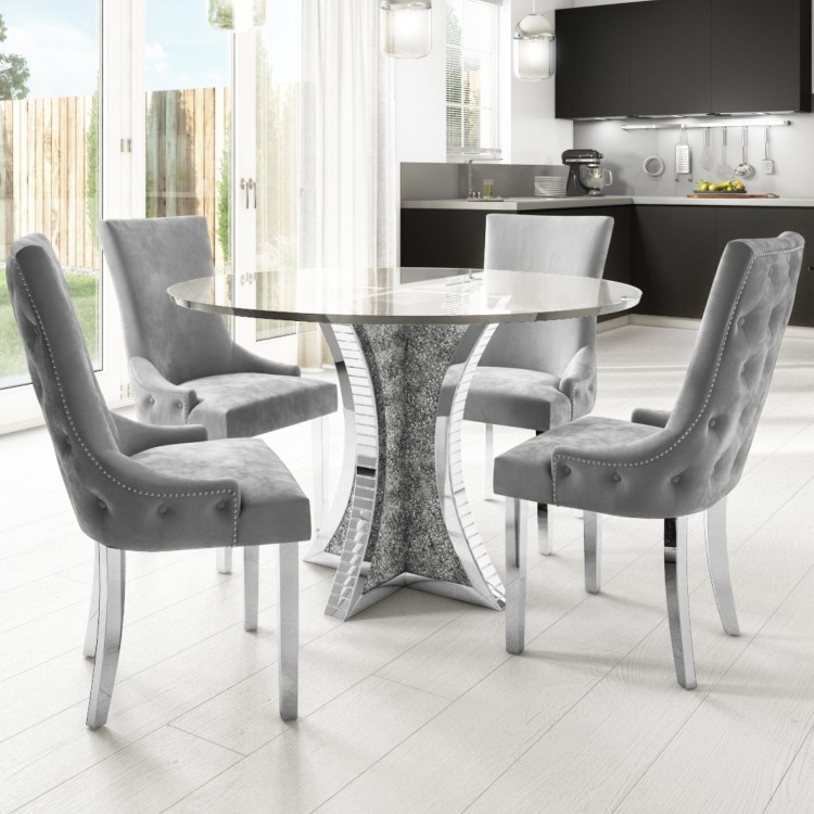Round Mirrored Dining Table Glass Top & Crushed Diamond Effect - Seats 4 - Jade Boutique