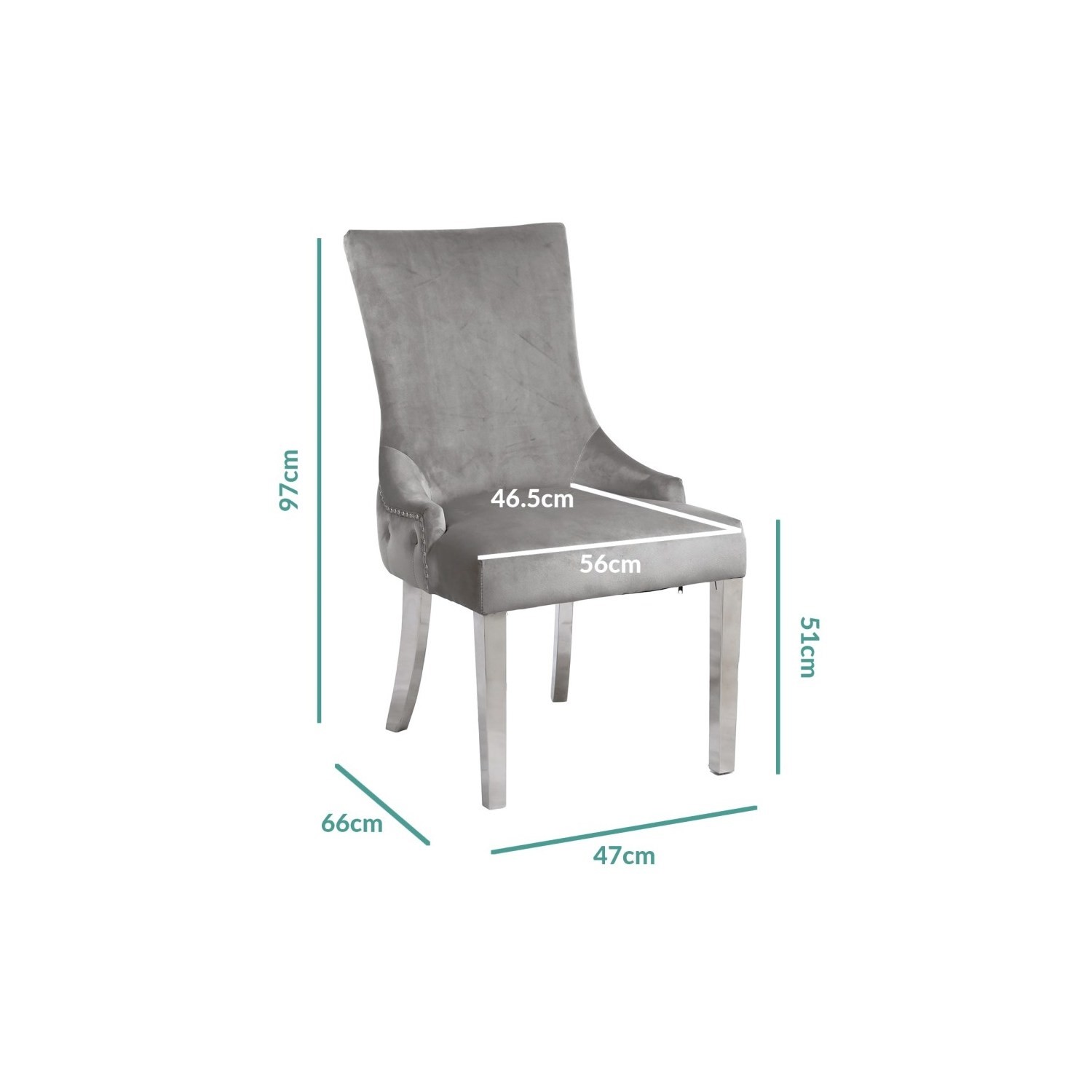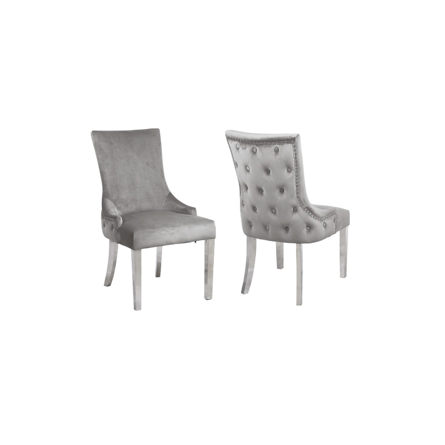 1 x Pair of Button Back Grey Velvet Dining Chairs - Jade Boutique