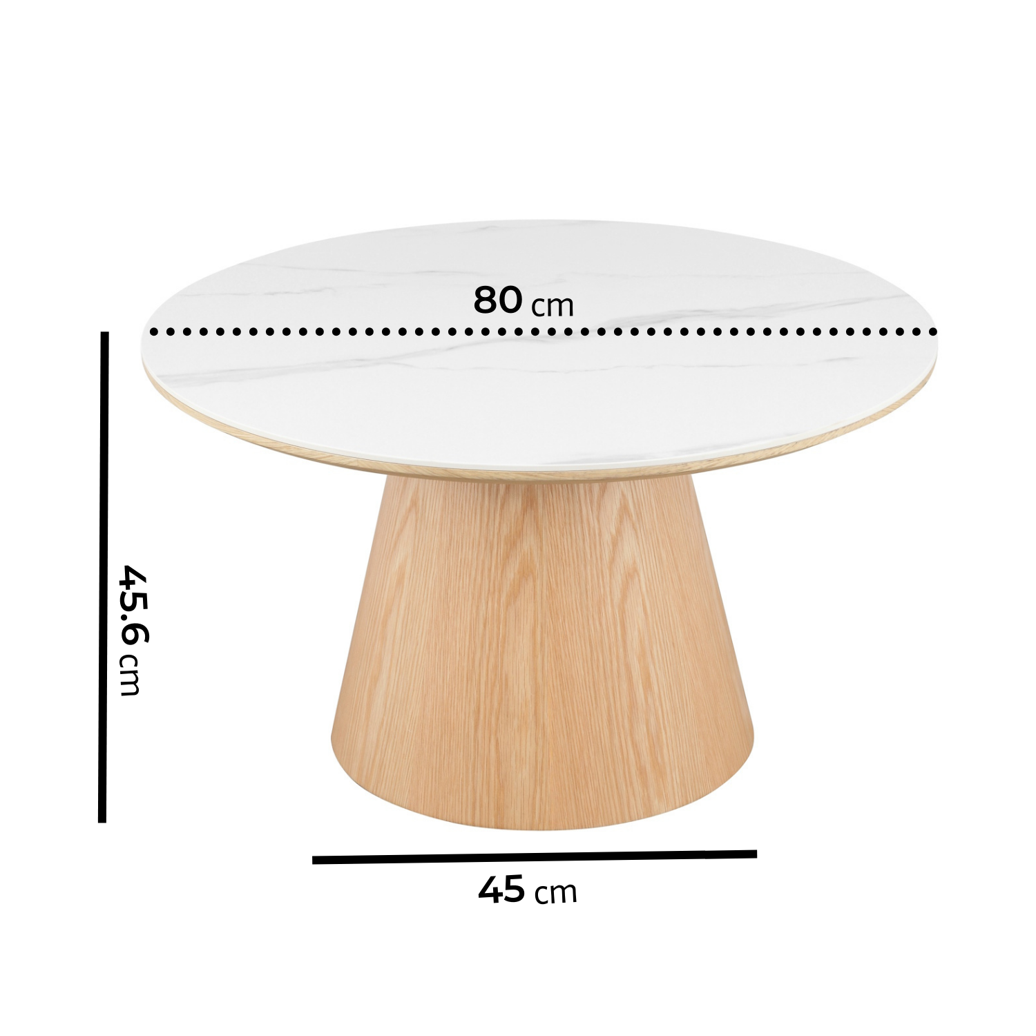 Versatile Aesthetic: The marble effect top adds a luxurious touch while the natural oak veneer brings warmth and balance blending seamlessly with a variety of interior styles.