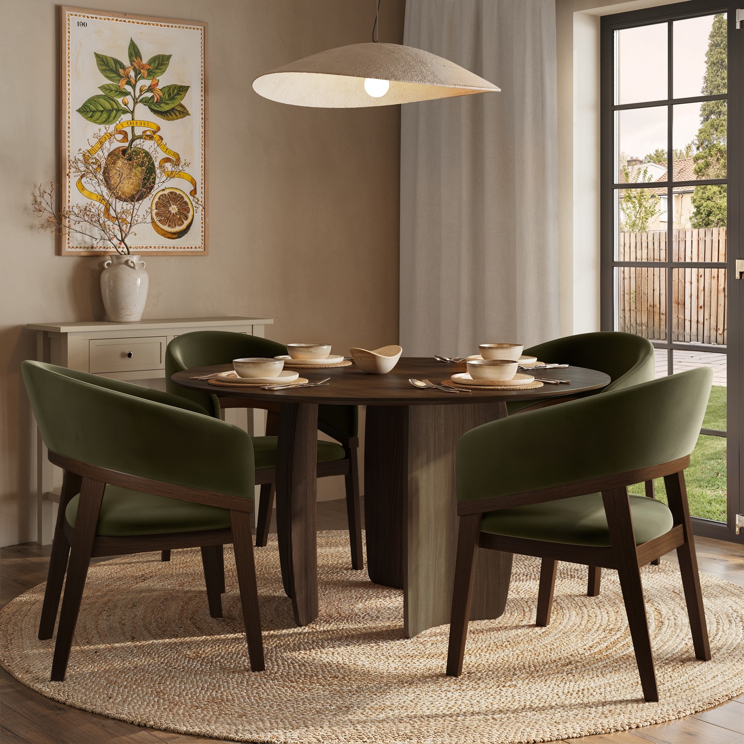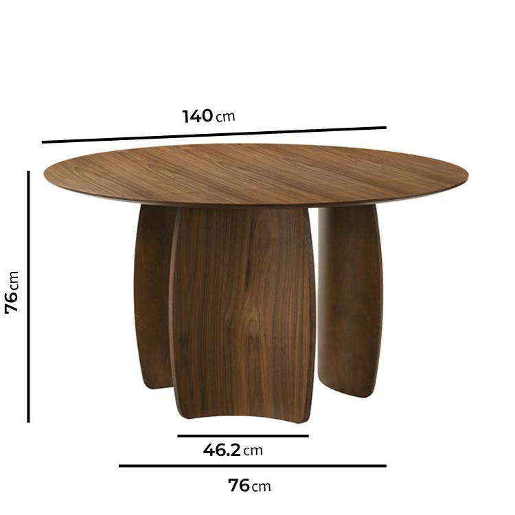 Transform your dining area with the Leona Round Dining Table, a stunning blend of mid-century modern design and timeless appeal. Its curved walnut legs and spacious tabletop create a stylish focal point, comfortably accommodating 6 people for family meals or entertaining. The warm walnut finish highlights the natural beauty of the wood, while the durable construction ensures it stands up to everyday use. Perfect for both modern and traditional interiors, this table effortlessly combines practicality with sophisticated design.