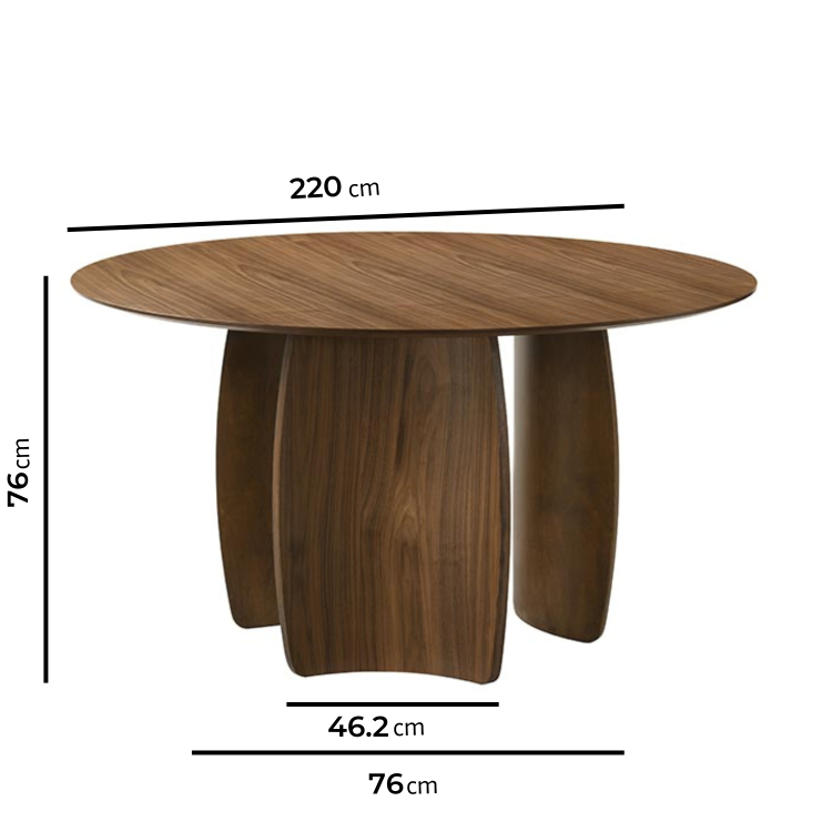 1x Round Walnut Curved Leg Dining Table - Leona